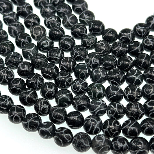 8mm black jade - round - carved - 15" strand - approx. 50 baeds