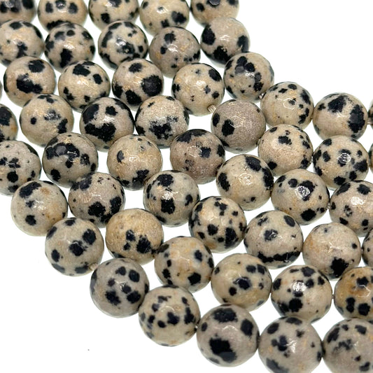 8mm dalmatian jasper beads - round - faceted - 15" strand - approx. 50 beads