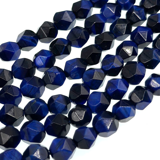 8mm dark blue tiger eye - star cut - faceted - 15" strand - approx. 45 beads