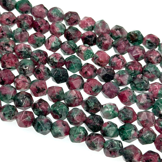 8mm - Watermelon Sesame Jasper - Star Cut - Faceted