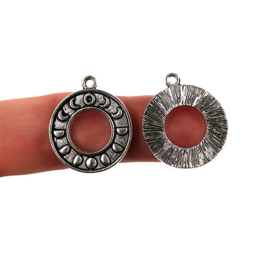 (10 pack) Moon Phase Hollow Circle charms - antique silver