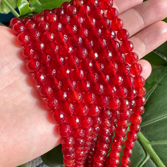 8mm red candy jade (quartz) - round- faceted (dyed) WJ40-14