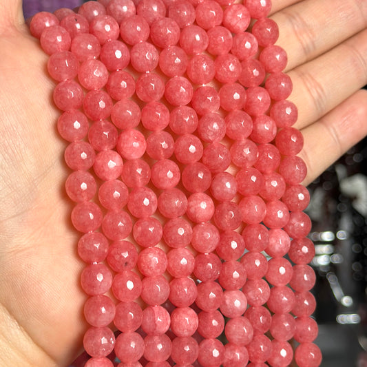 8mm watermelon pink candy jade (quartz) - round- faceted (dyed) WJ40-17