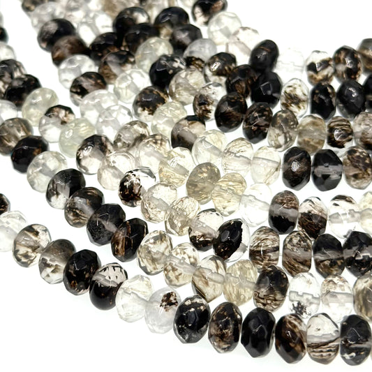 8x5mm · DENDRITIC JASPER · rondelle · faceted · 15" strand · approx. 70 beads · G22- 6
