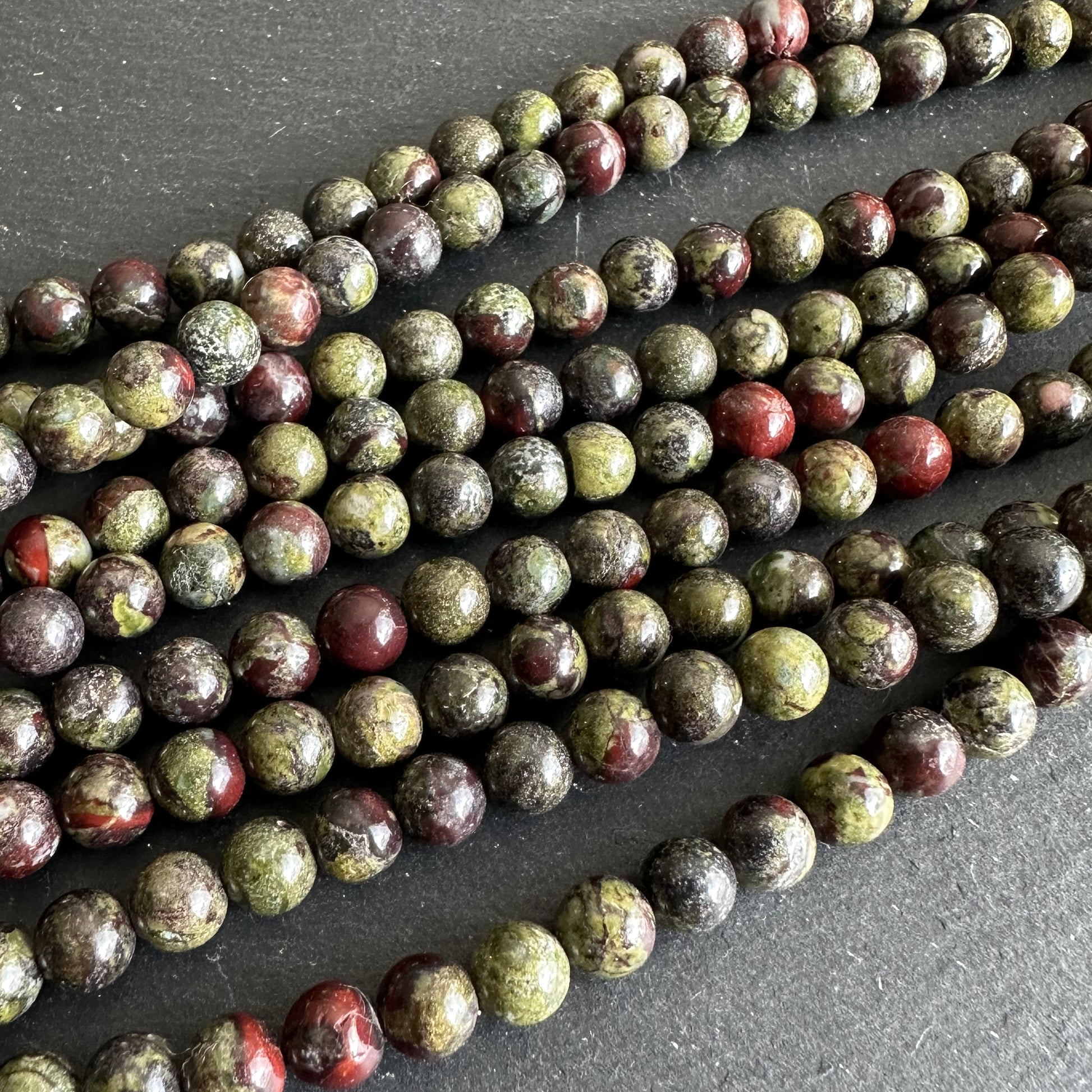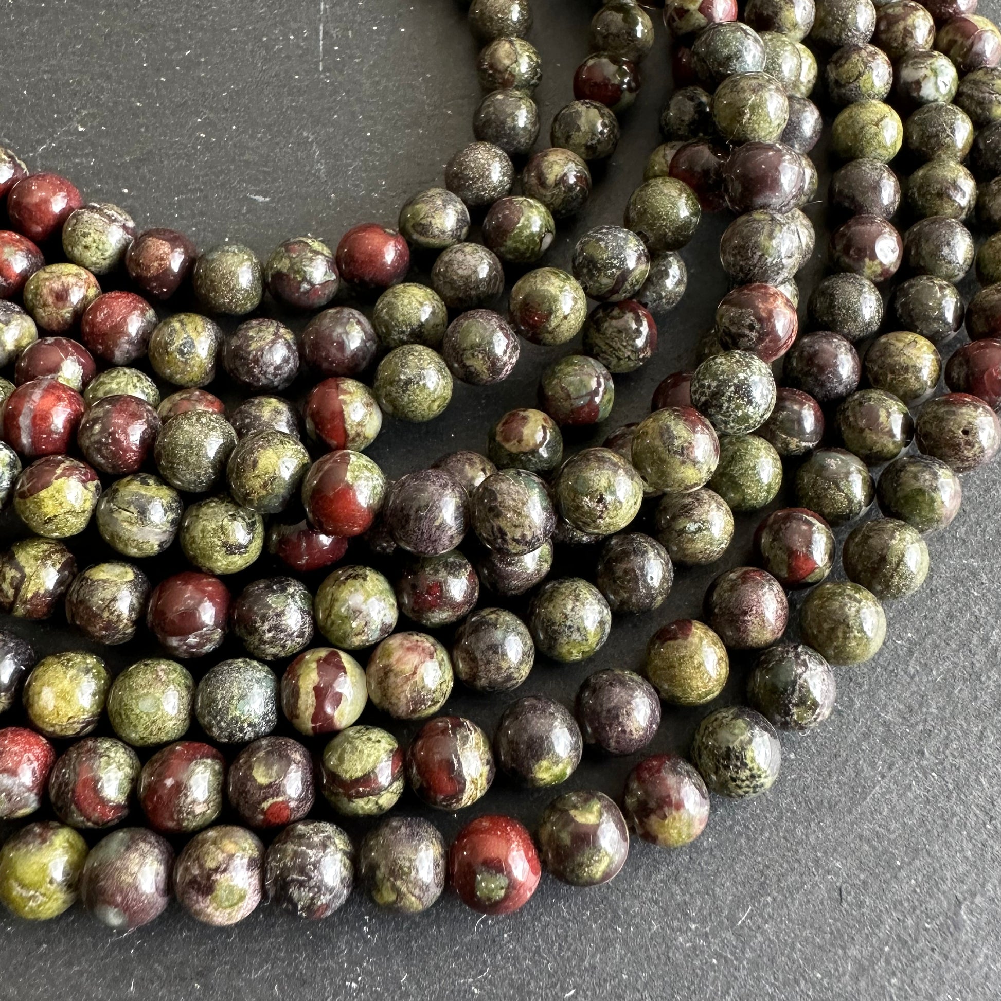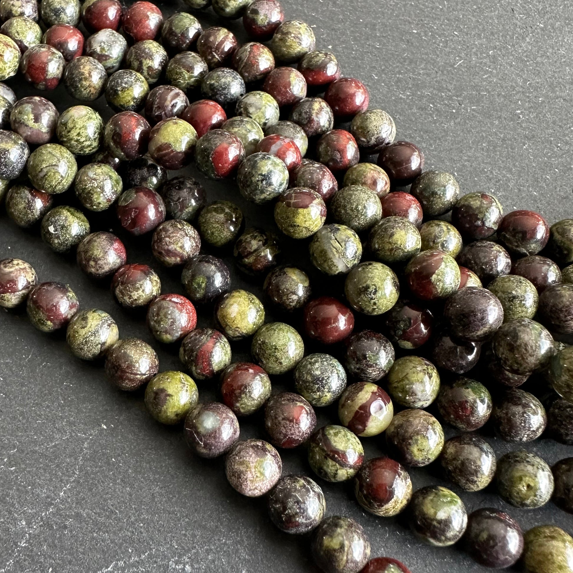 6mm dragon blood jasper beads - round - smooth - 15" strand - approx. 65 beads