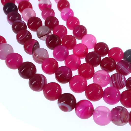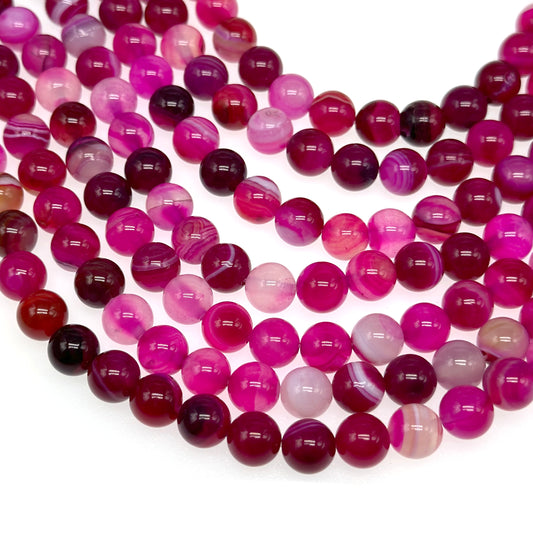 8mm - Pink Striped Agate - Round - Smooth - 15" strand - approx. 50 beads ST2-4