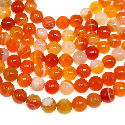 8mm - Orange Striped Agate - Round - Smooth - 15" strand - approx. 50 beads ST2-3