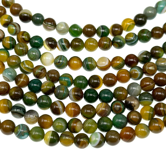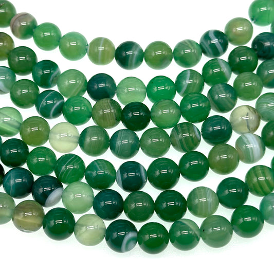 8mm - Green Striped Agate - Round - Smooth - 15" strand - approx. 50 beads ST2-1