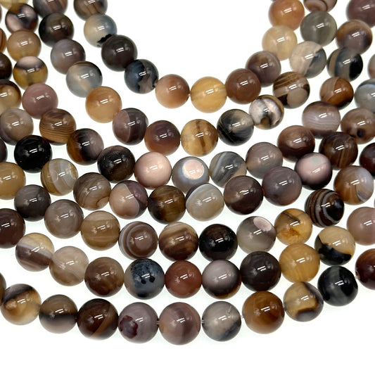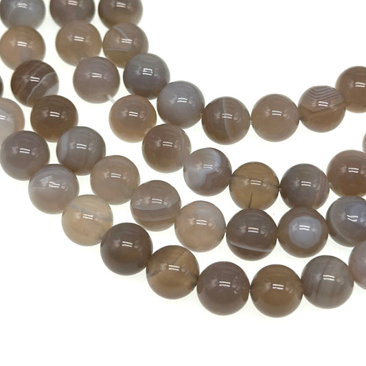 8mm - Light Gray Striped Agate - Round - Smooth - 15" strand - approx. 50 beads ST2-2