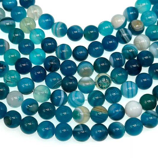 8mm blue striped agate beads (dyed) - round - smooth - 15" strand - approx. 50 beads ST2-6