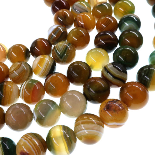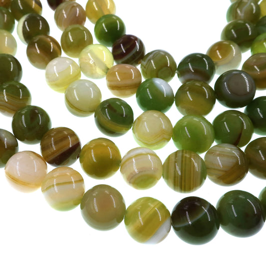 10mm yellow green striped agate beads - round - smooth - 15" strand - approx. 35 beads ST3-10
