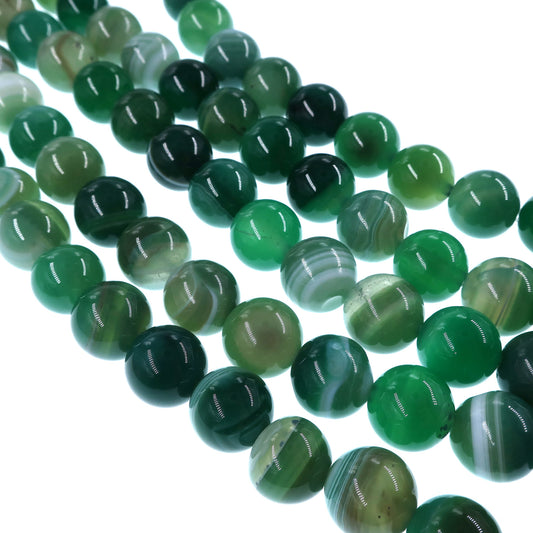 10mm seagreen striped agate beads - round - smooth - 15" strand - approx. 35 beads ST3-9