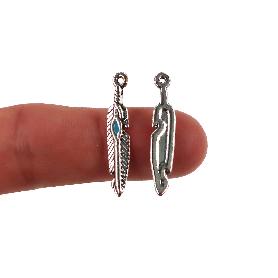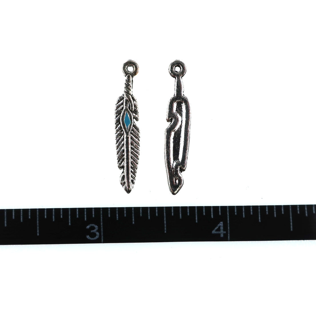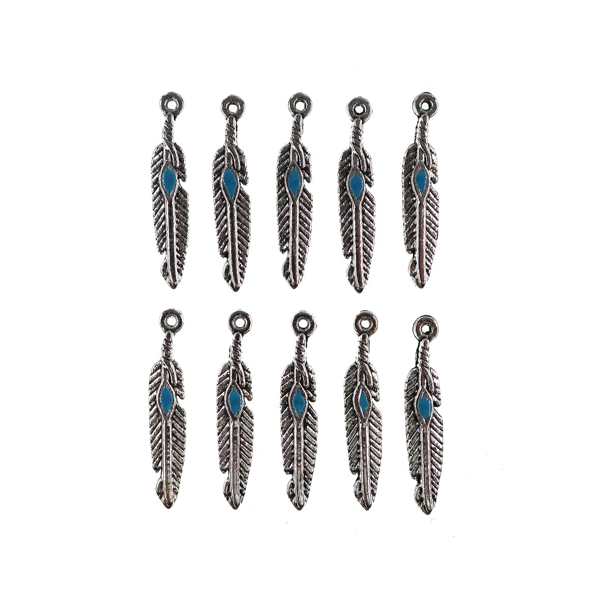(10 pack) Feather w/ blue enamel charms - antique silver color