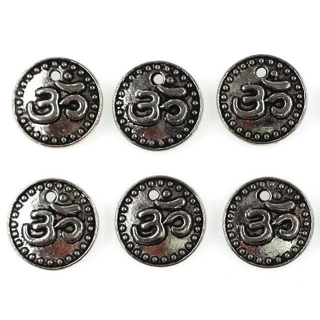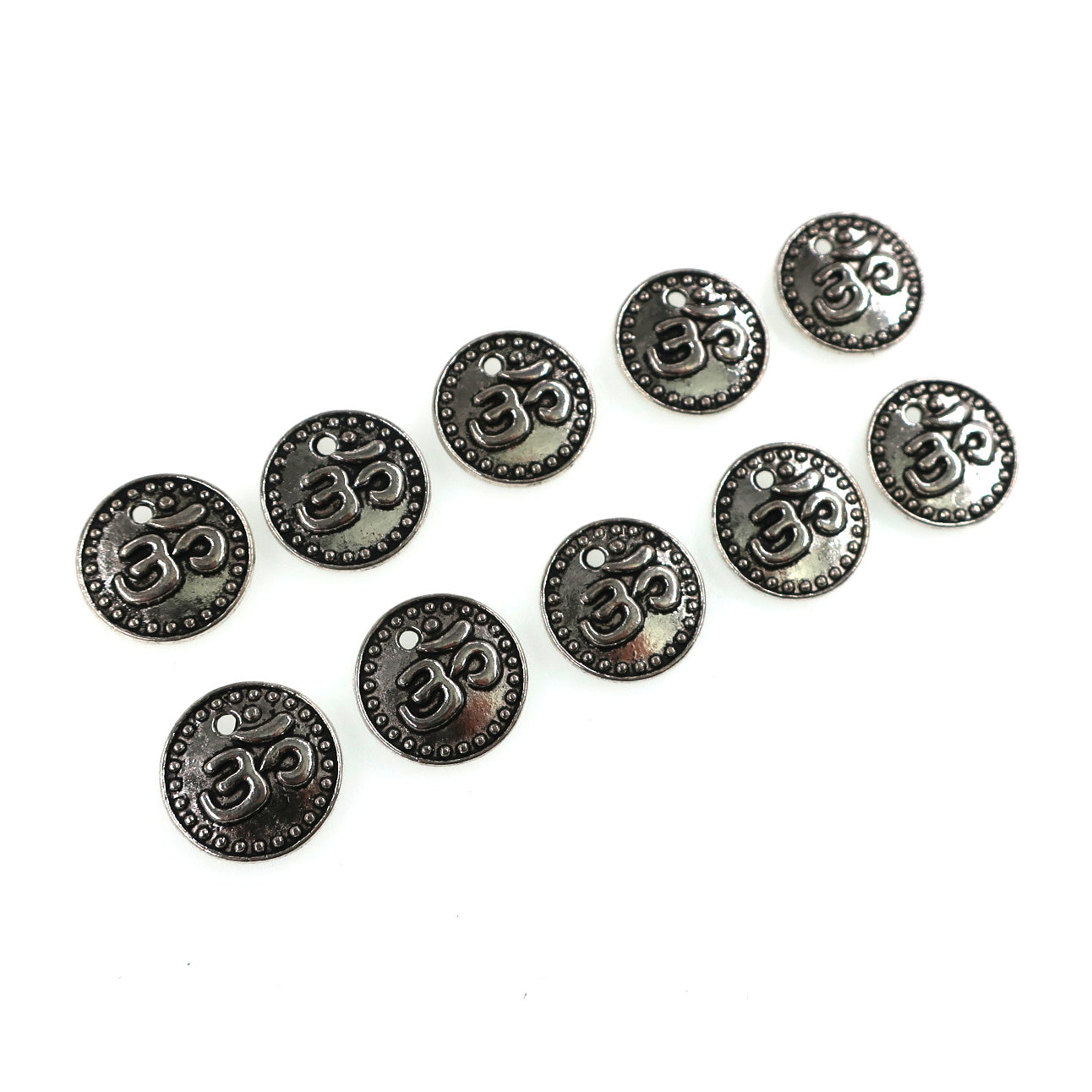 10 pack Ohm Coin charms - antique silver color - (double-sided)