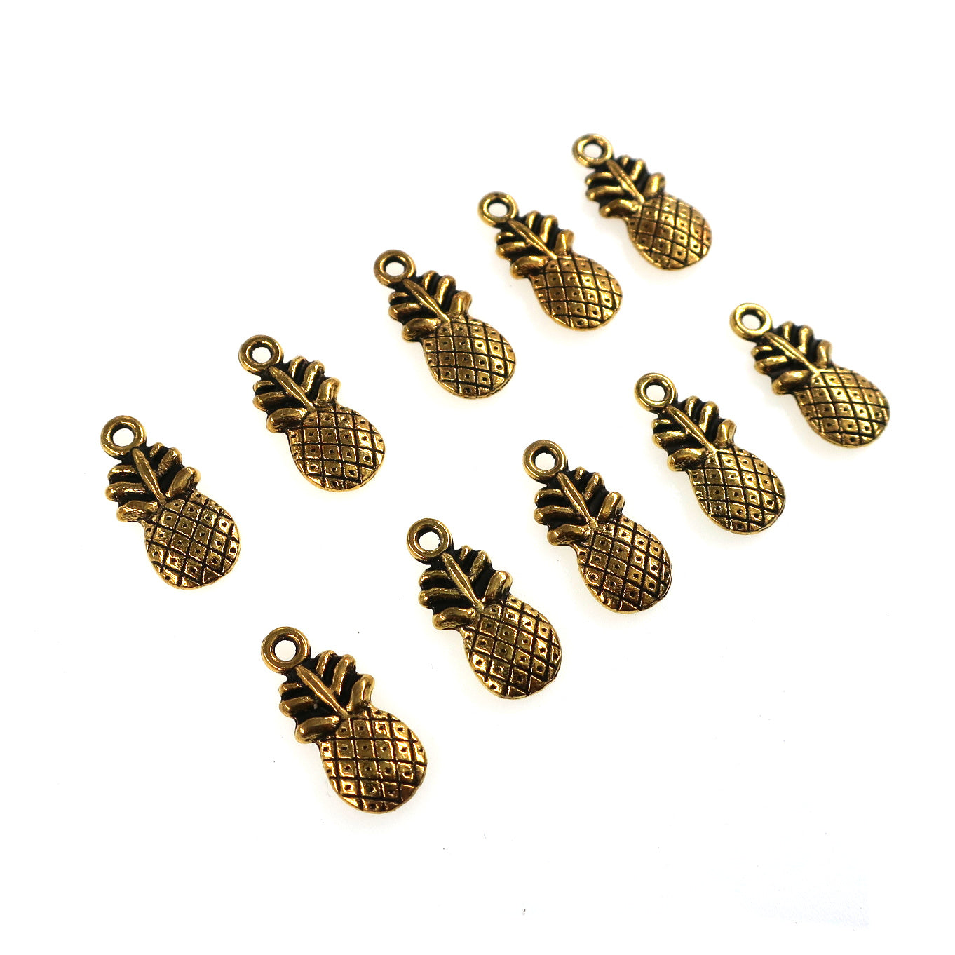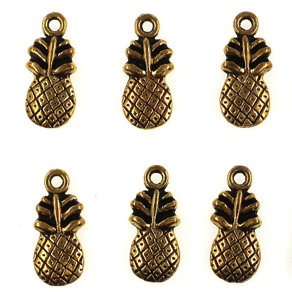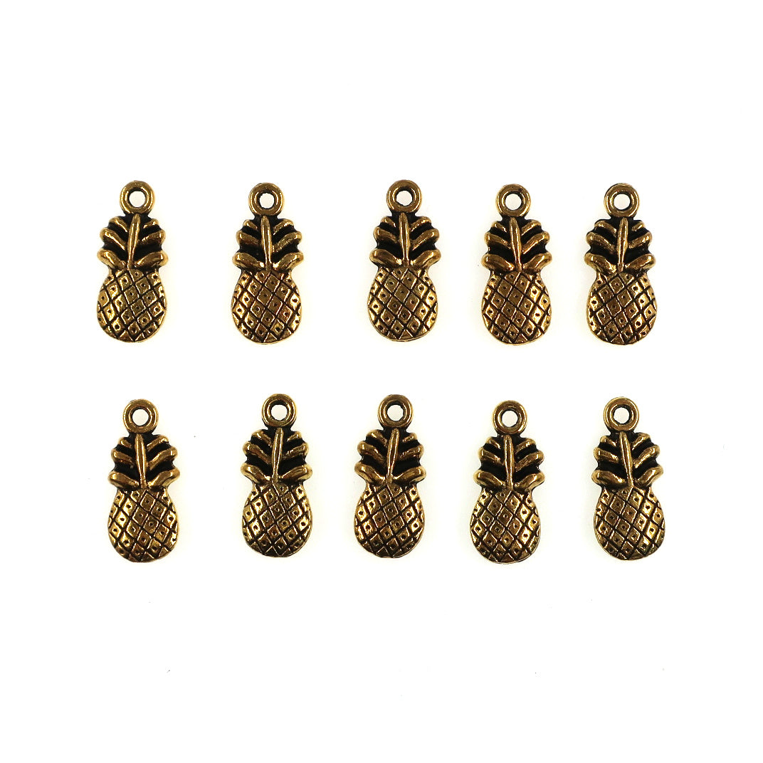 10 pack - Pineapple charms - antique gold color
