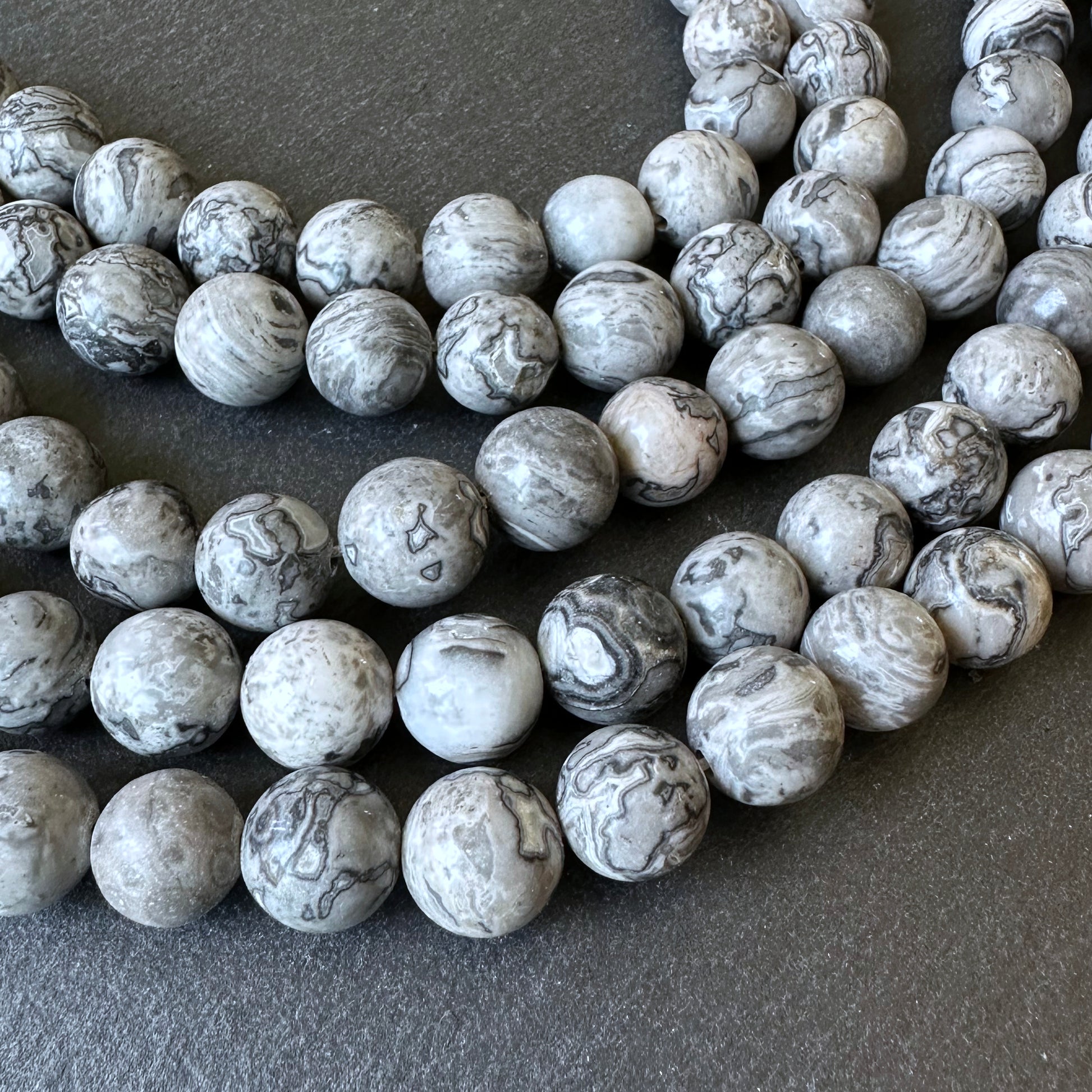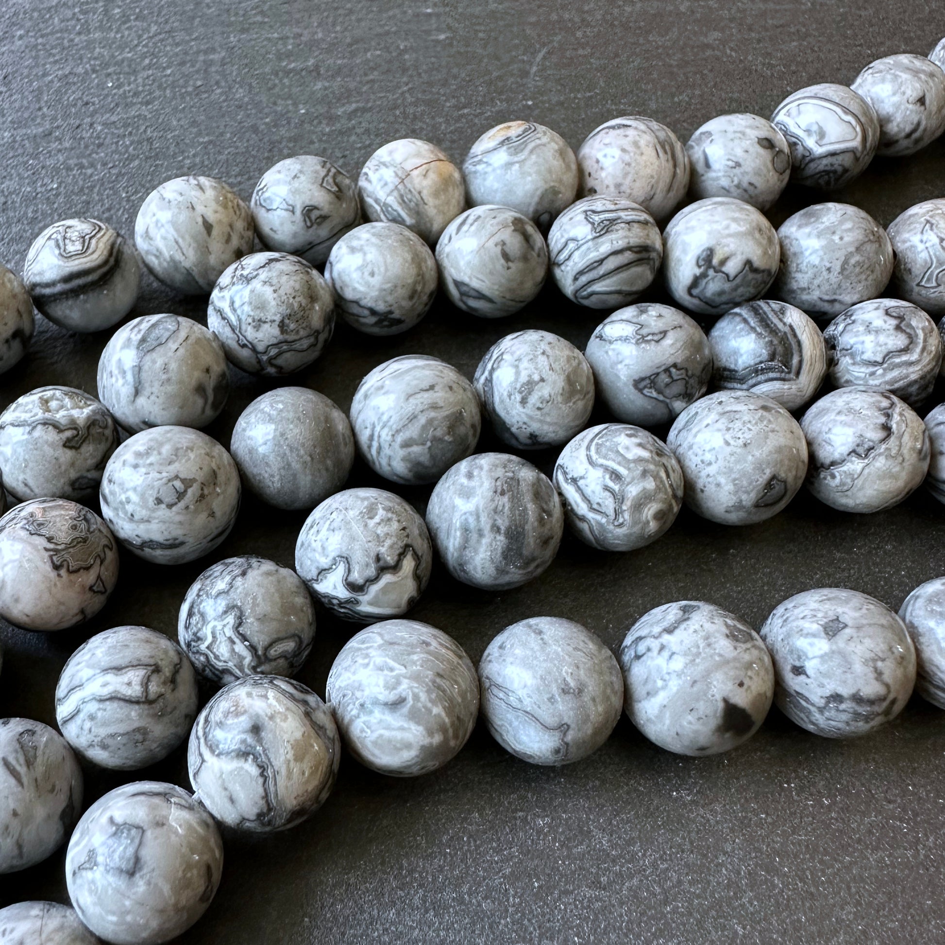 10mm netstone jasper beads (undyed)- round - smooth - 15" strand - approx. 35 beads