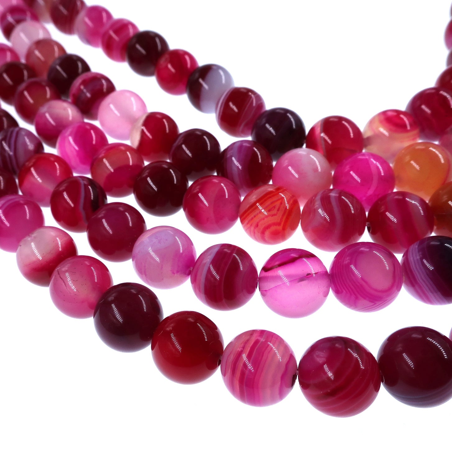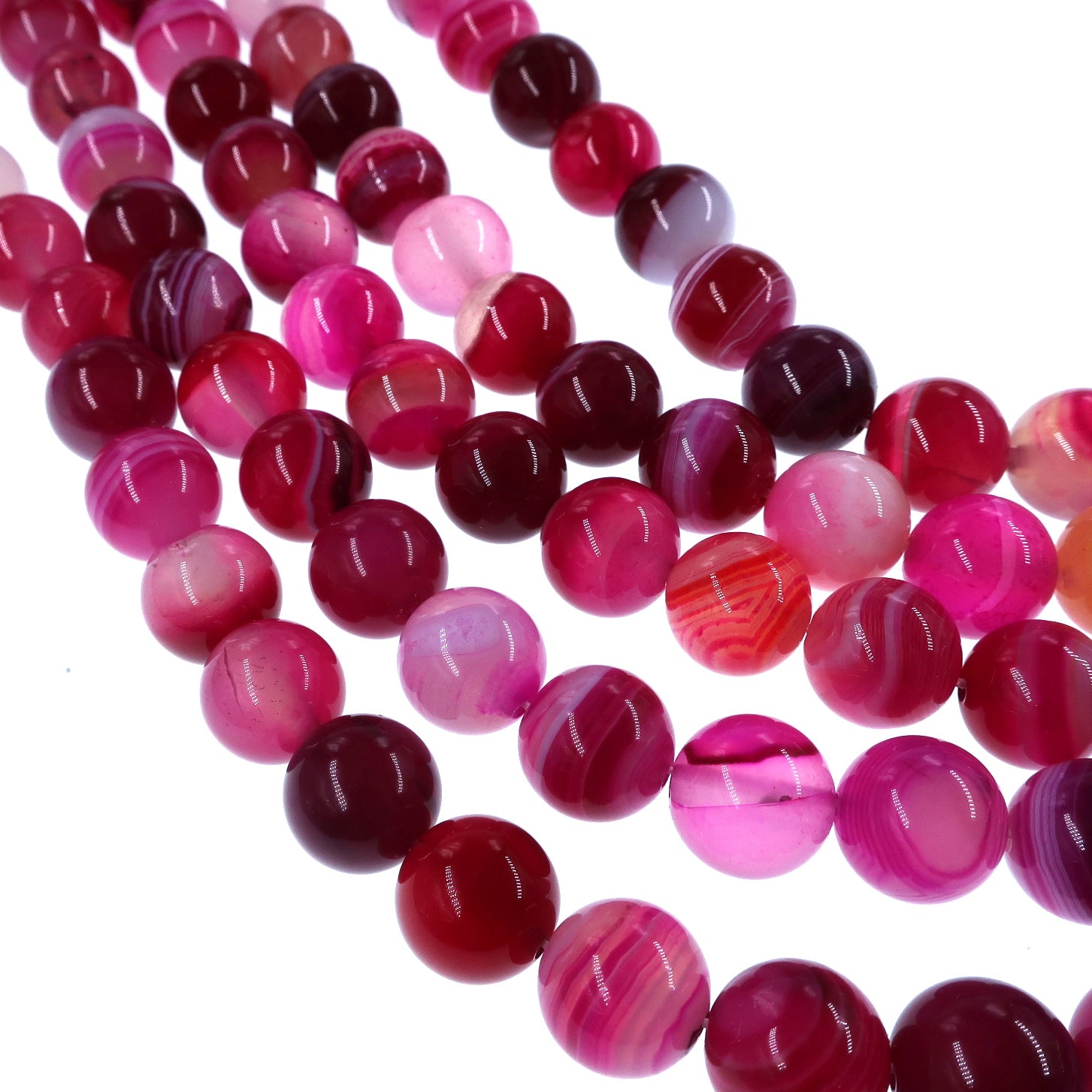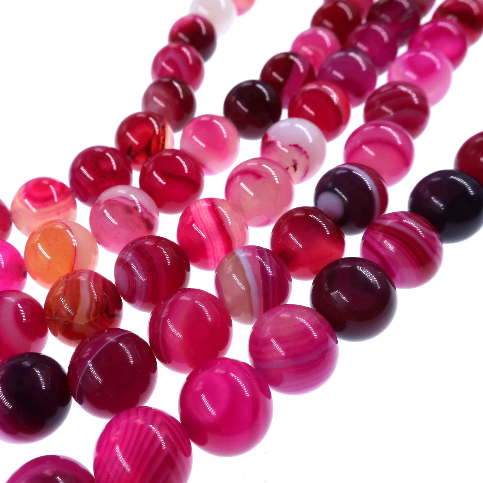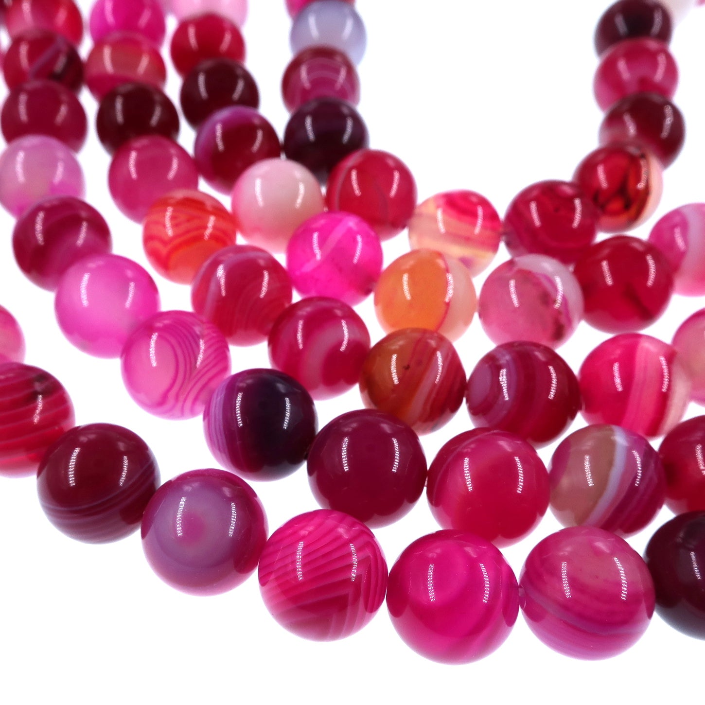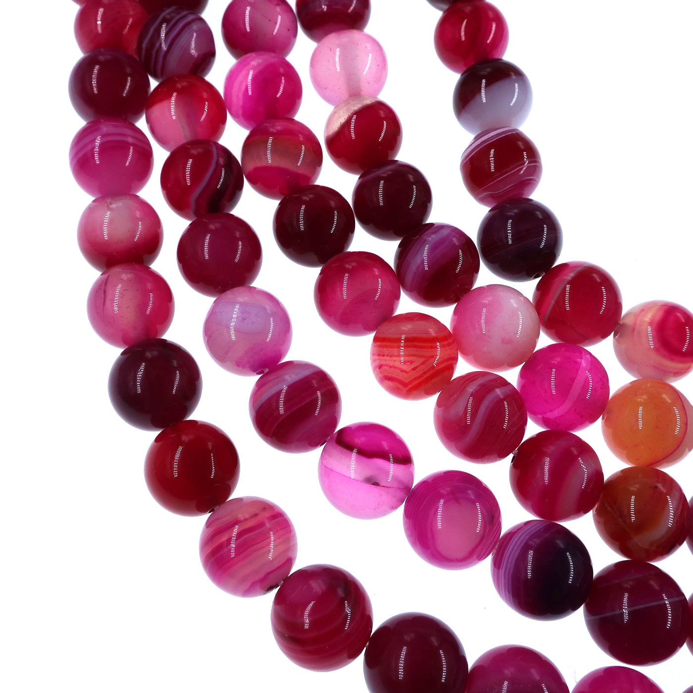 10mm pink striped agate beads - round - smooth - 15" strand - approx. 35 beads ST3-6