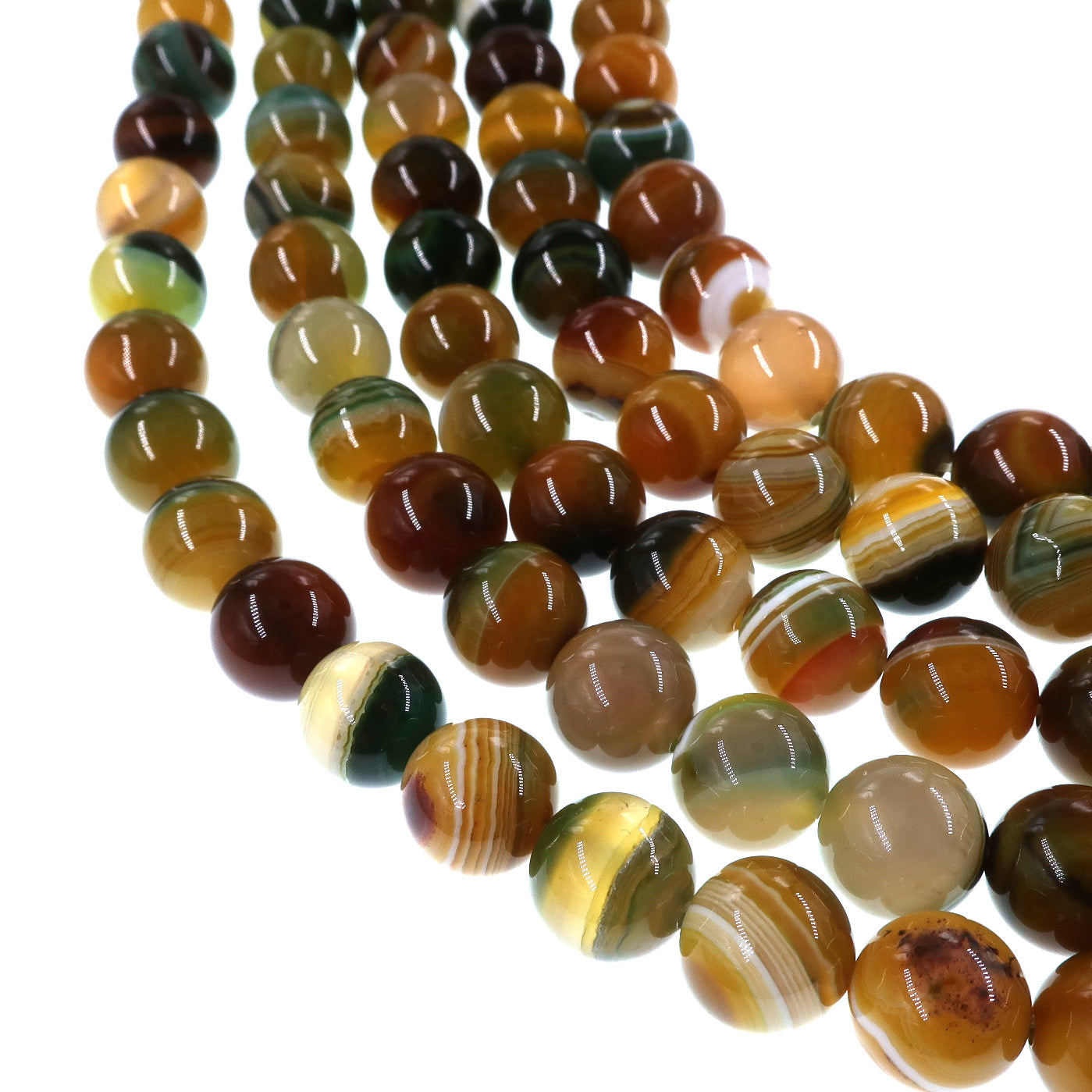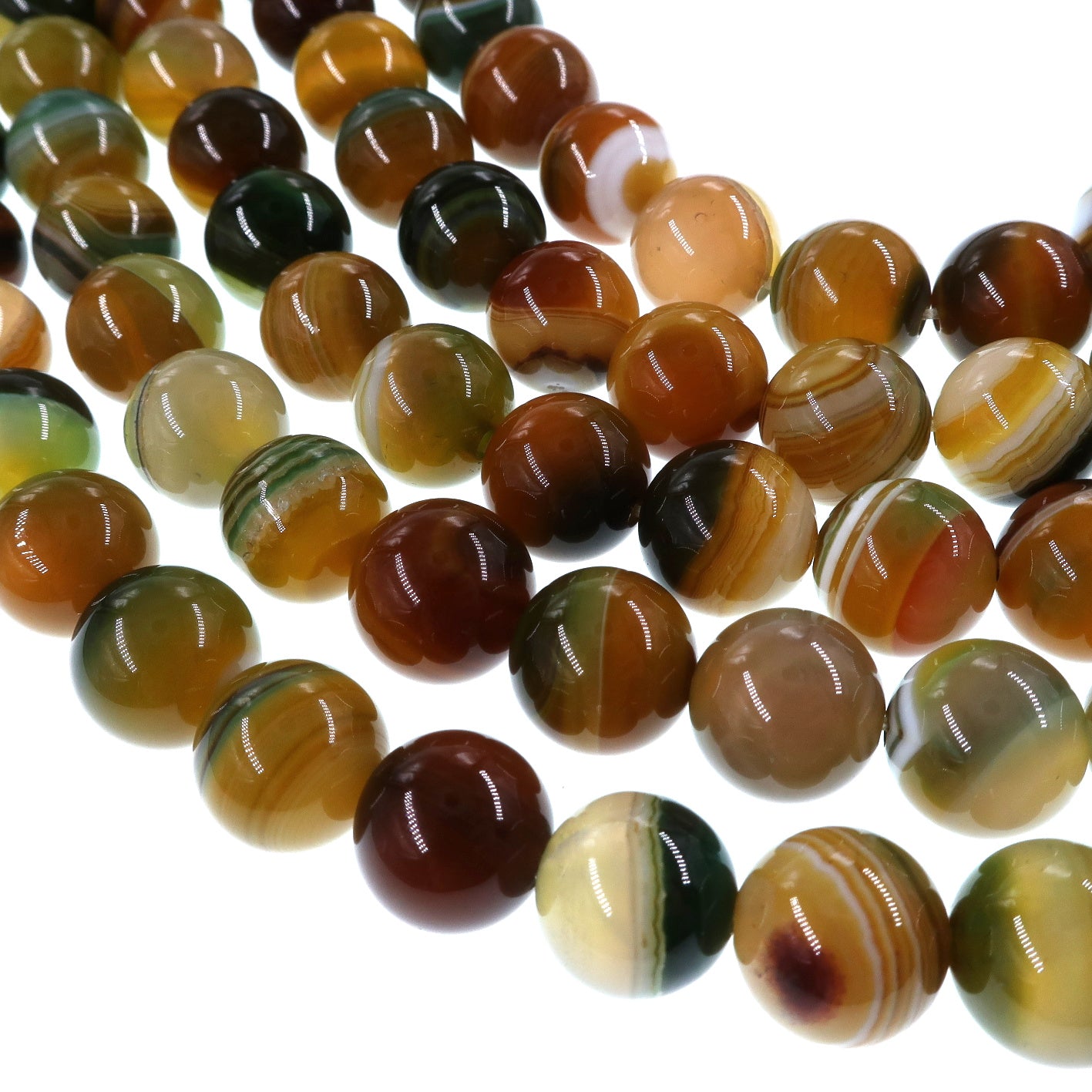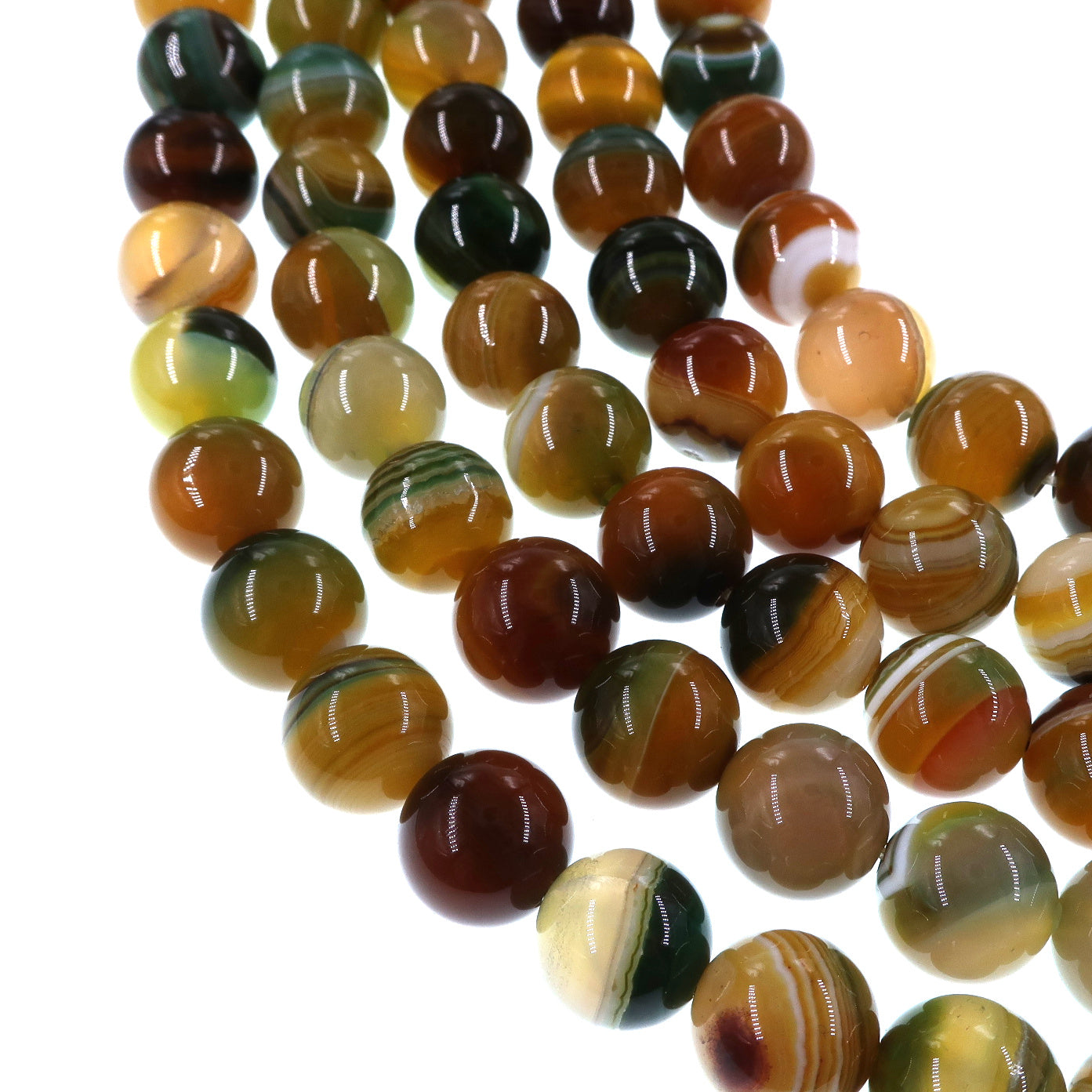 10mm yellow green striped agate beads - round - smooth - 15" strand - approx. 35 beads ST3-10