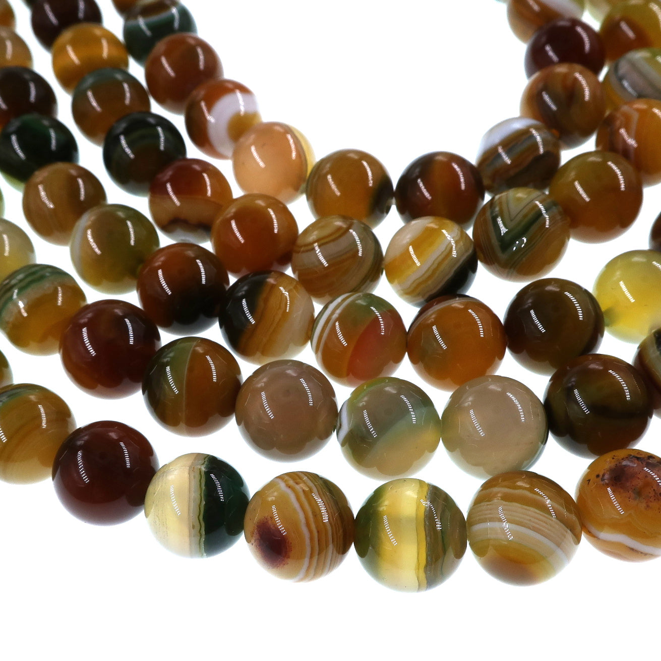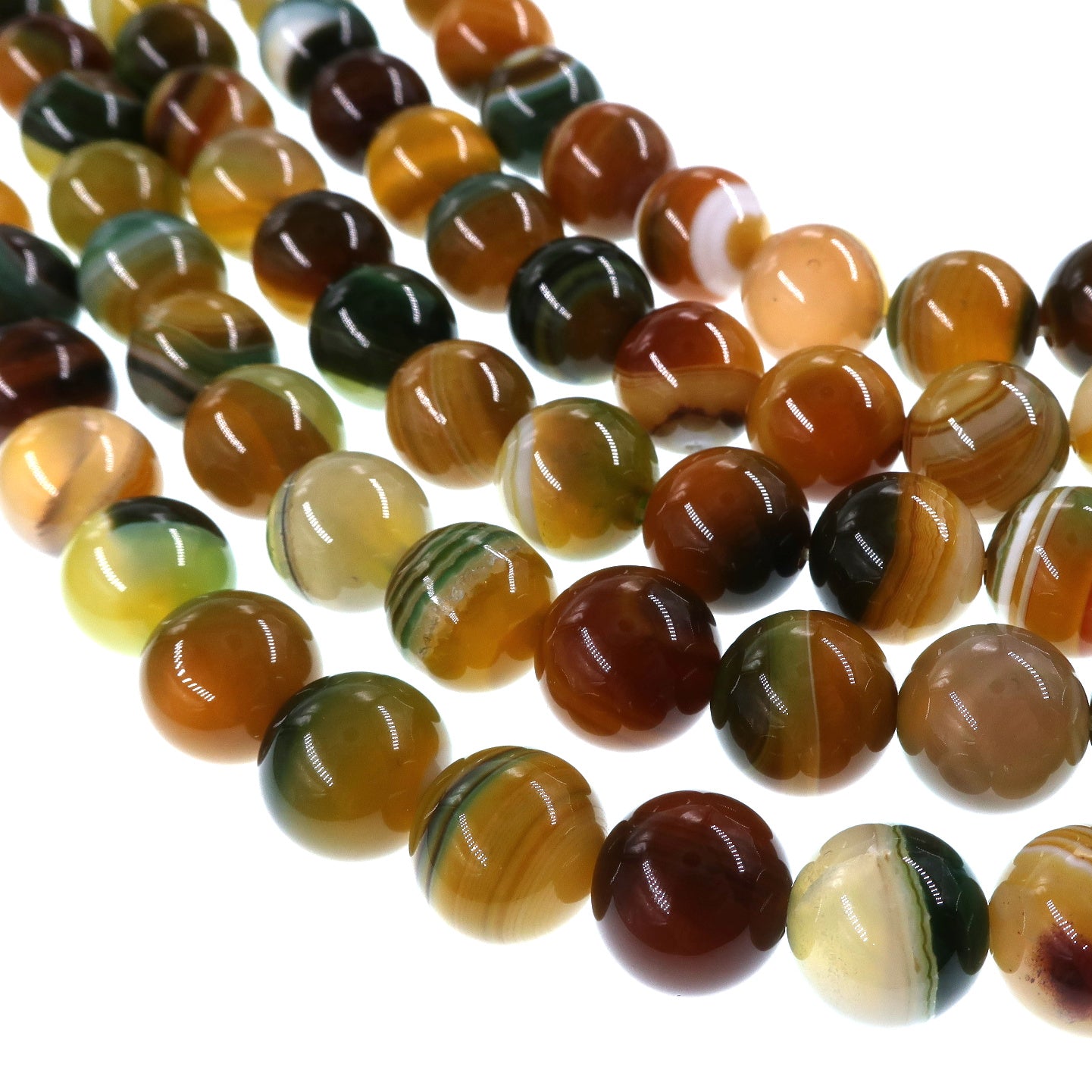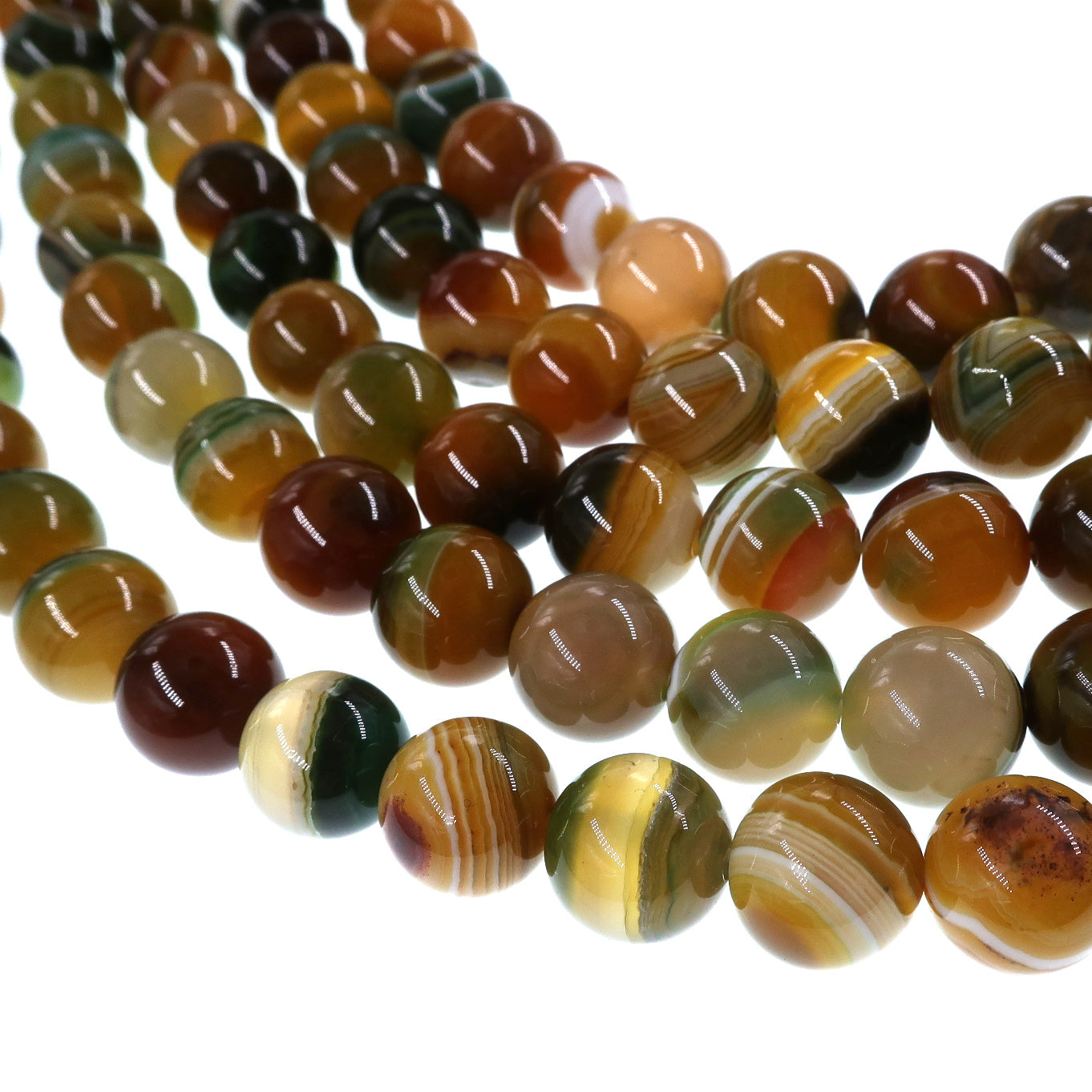 10mm yellow green striped agate beads - round - smooth - 15" strand - approx. 35 beads ST3-10