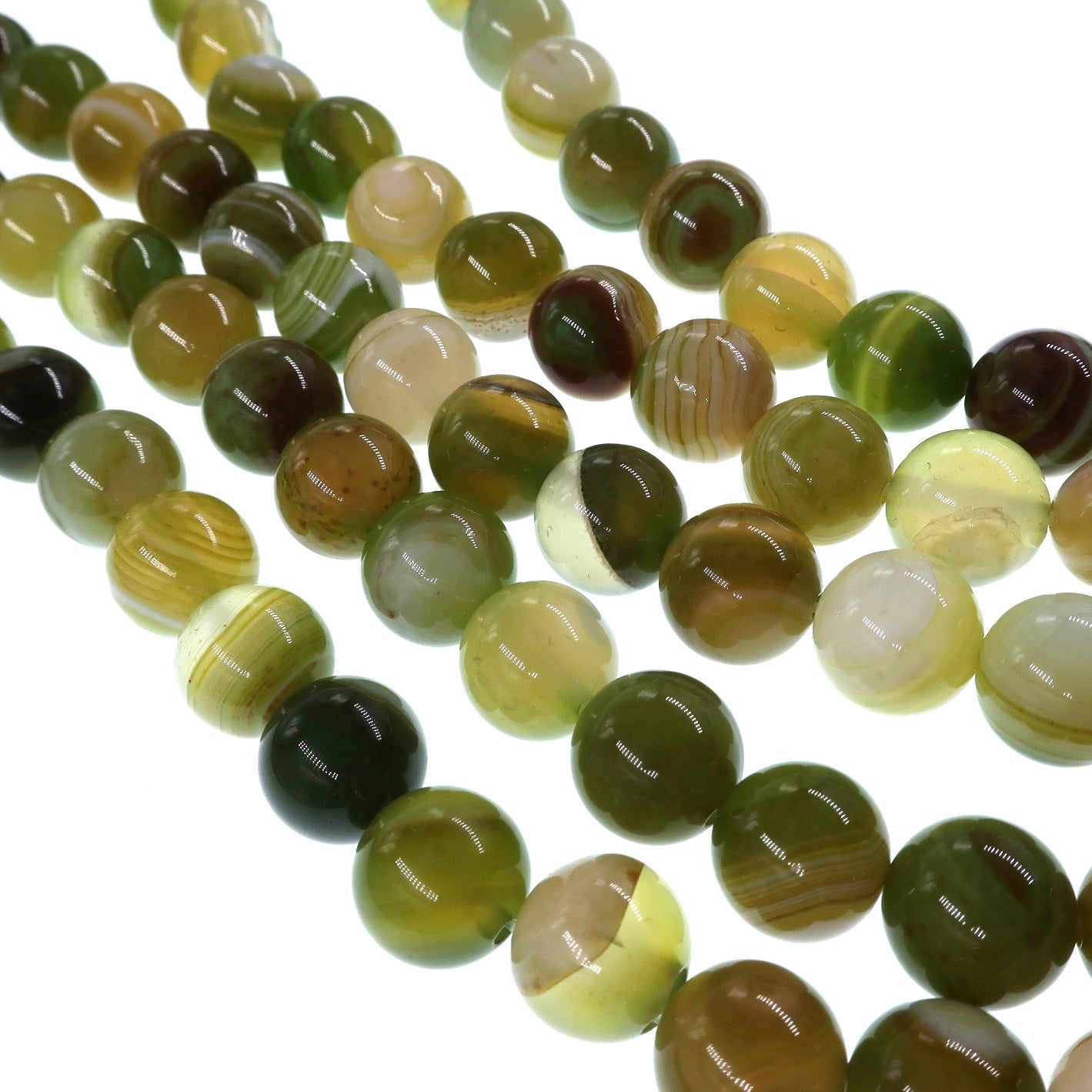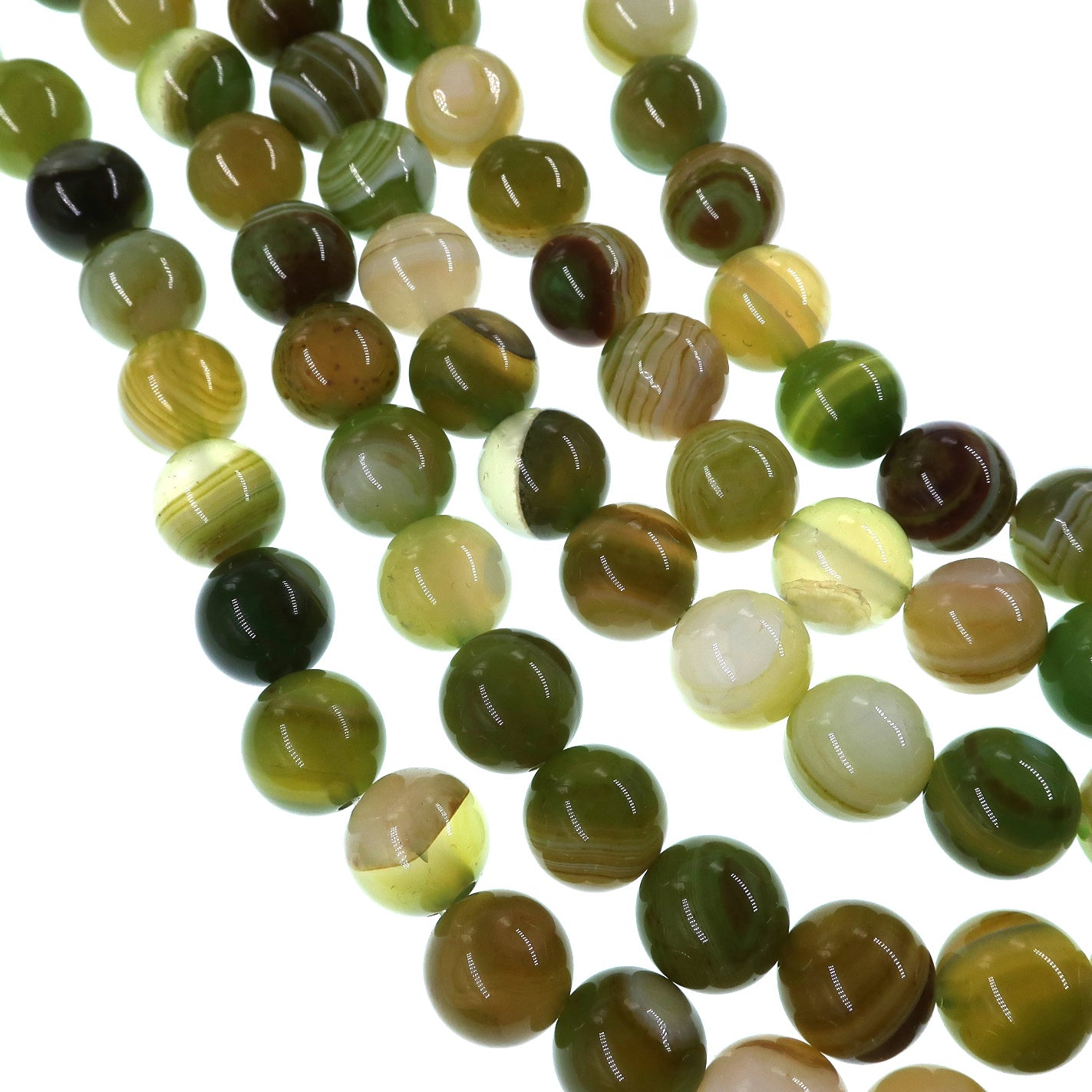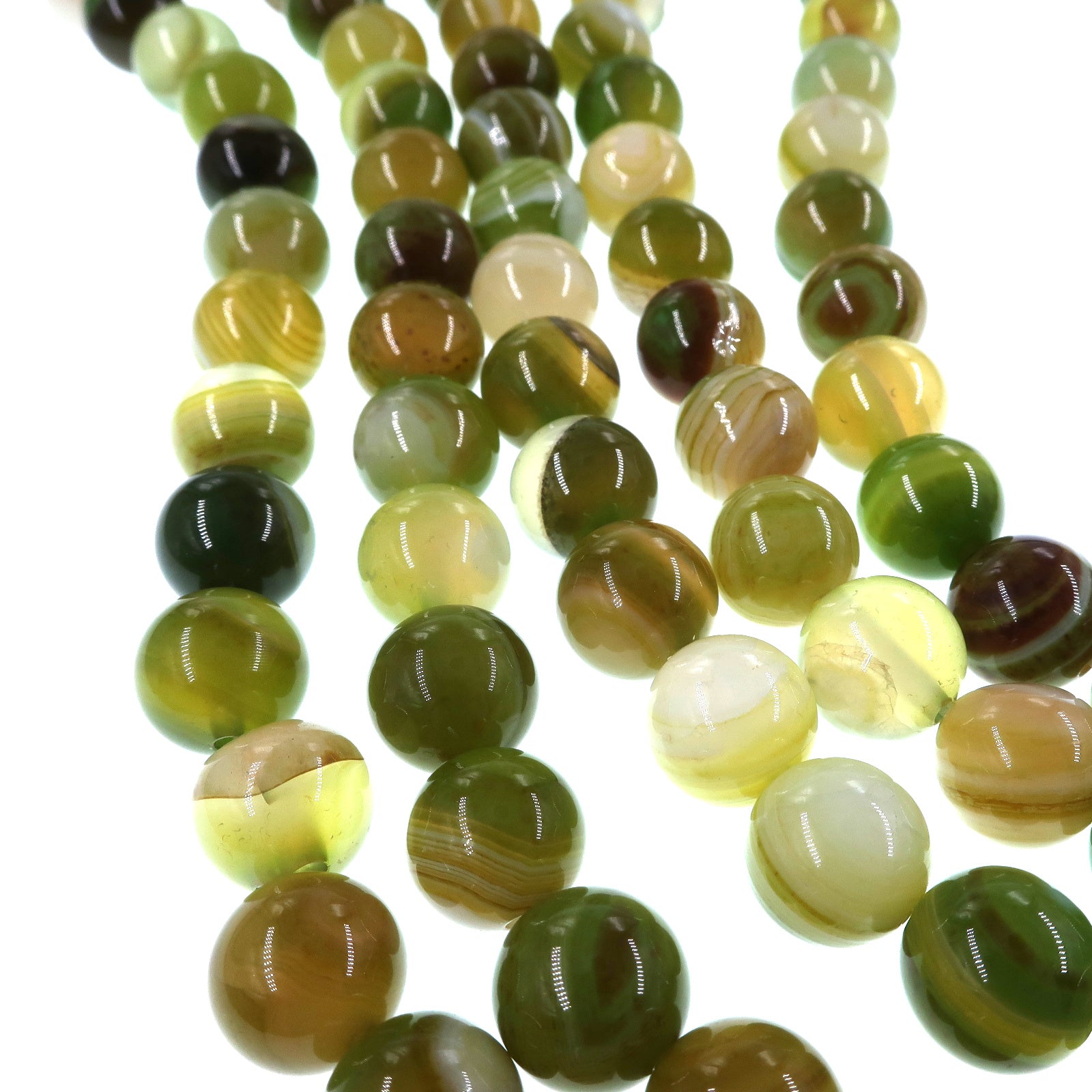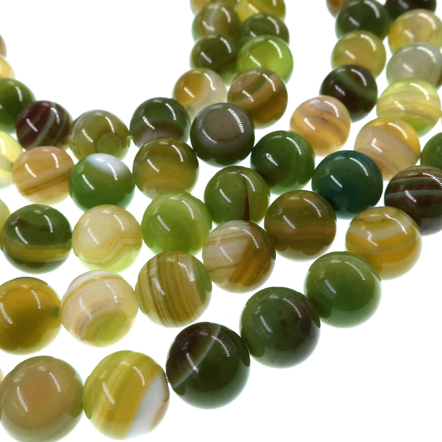 10mm lime green striped agate beads - round - smooth - 15" strand - approx. 35 beads ST3-4