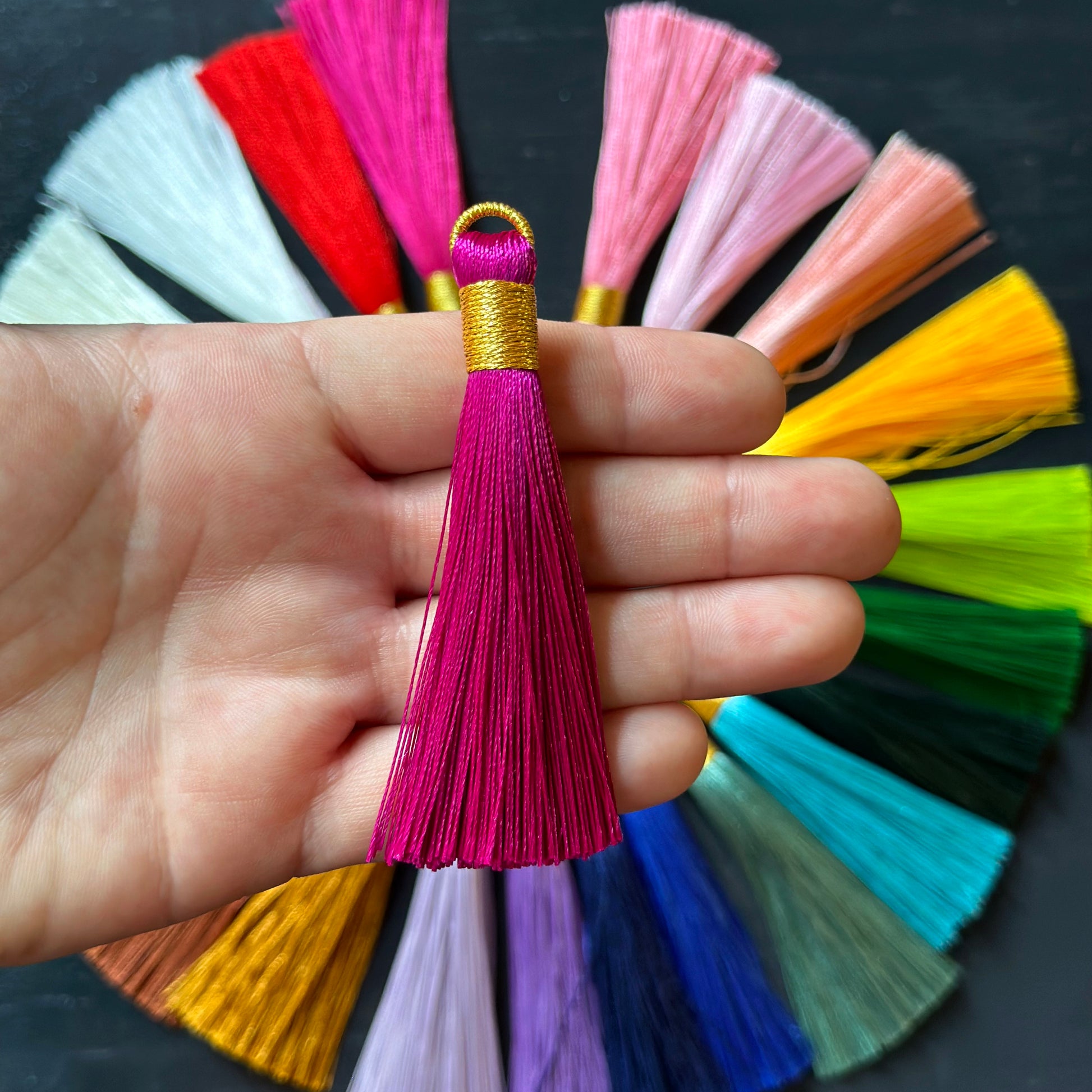note: all tassels vary slightly in length. All are variations over 3"