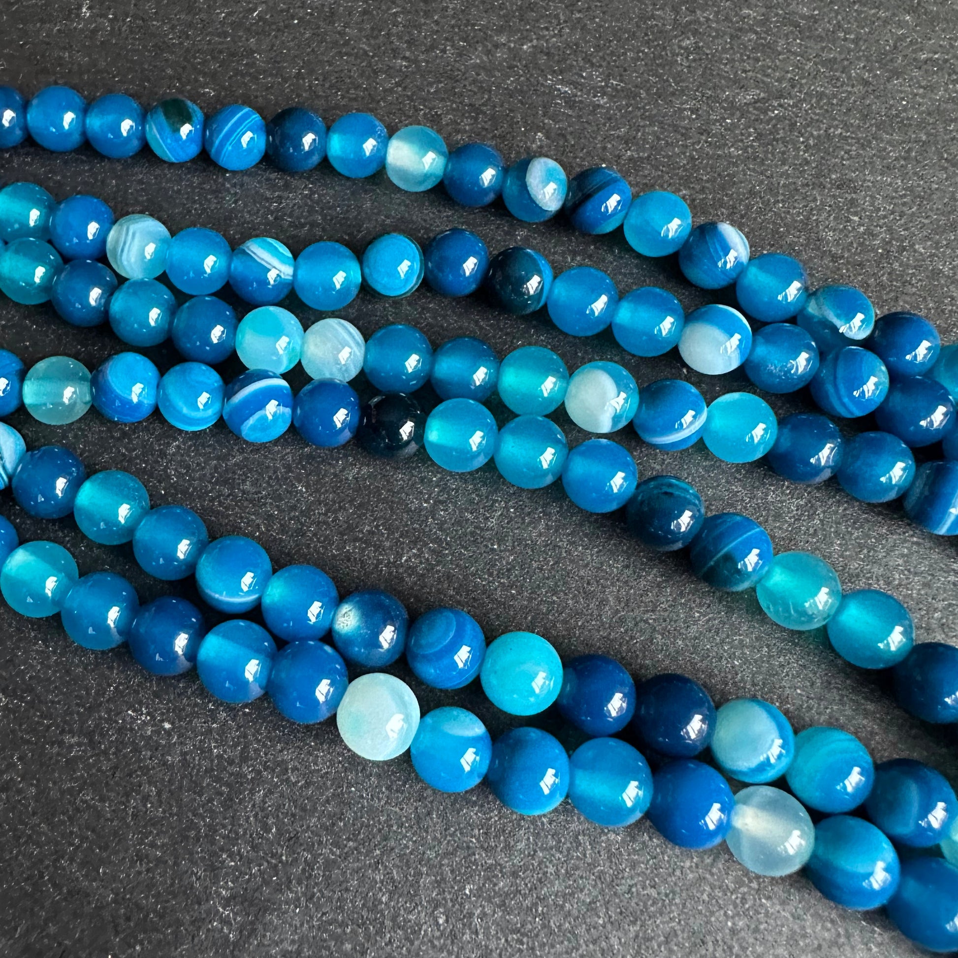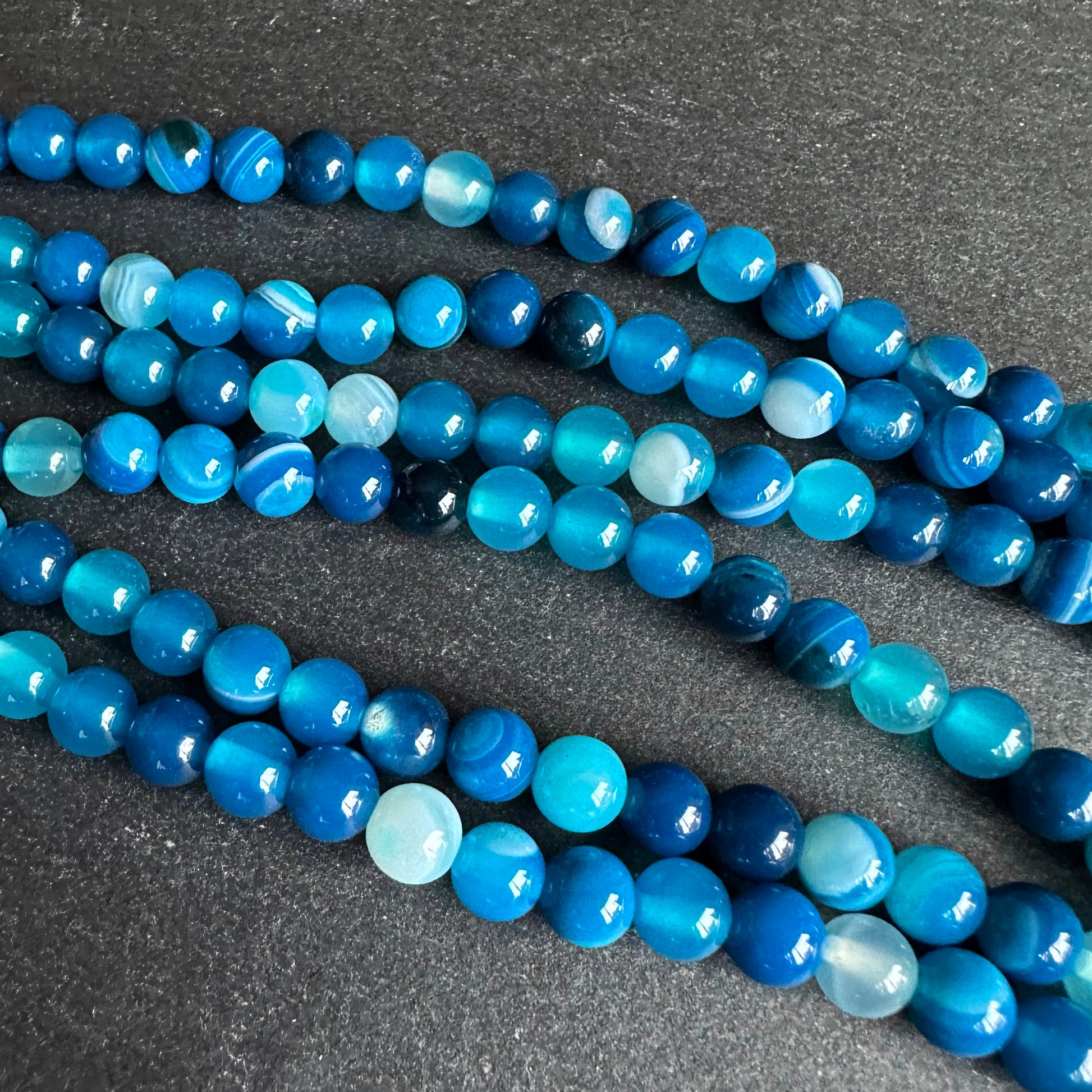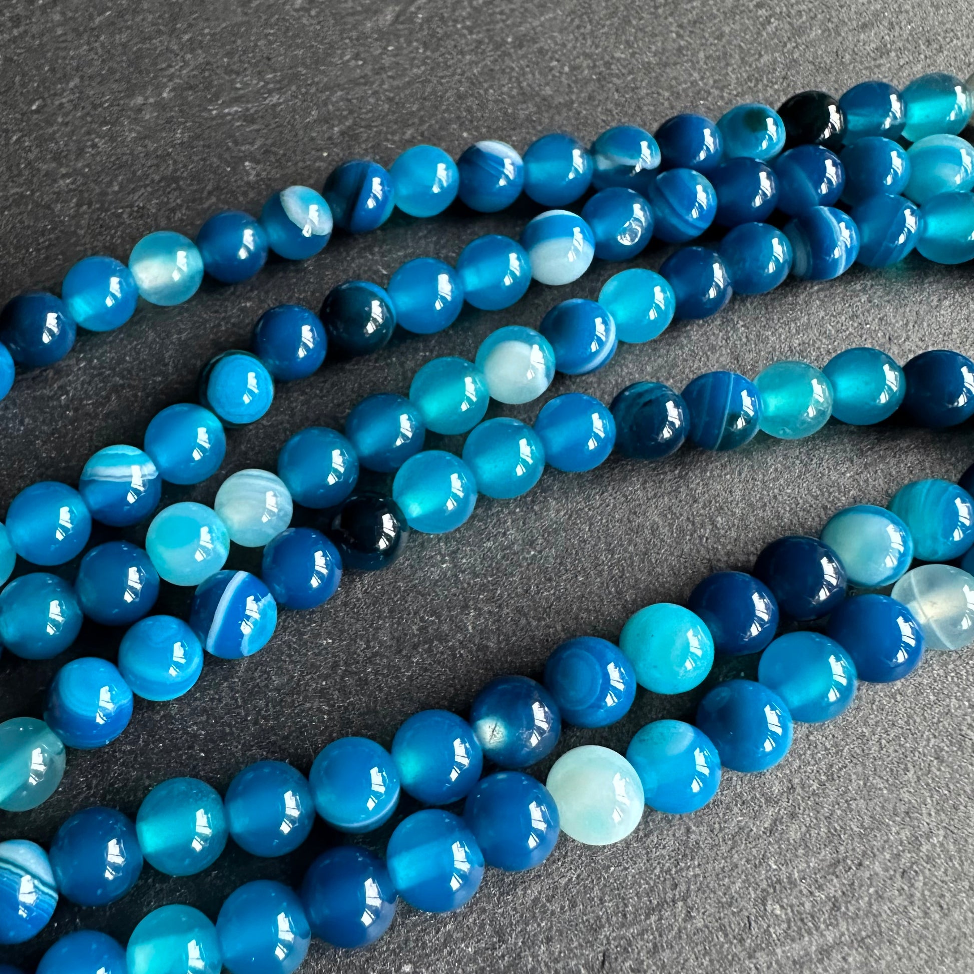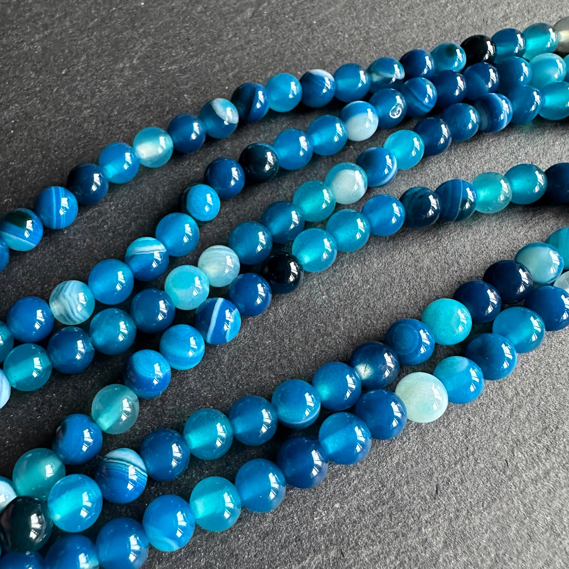 6mm blue striped agate beads - round - smooth - 15" strand - approx. 60 beads ST1-4