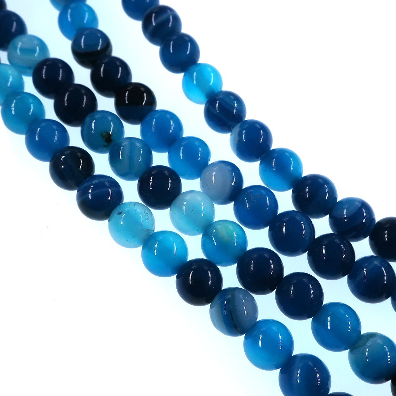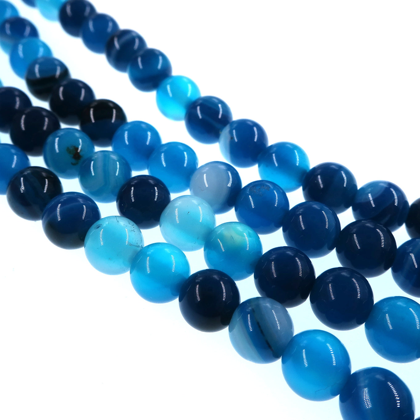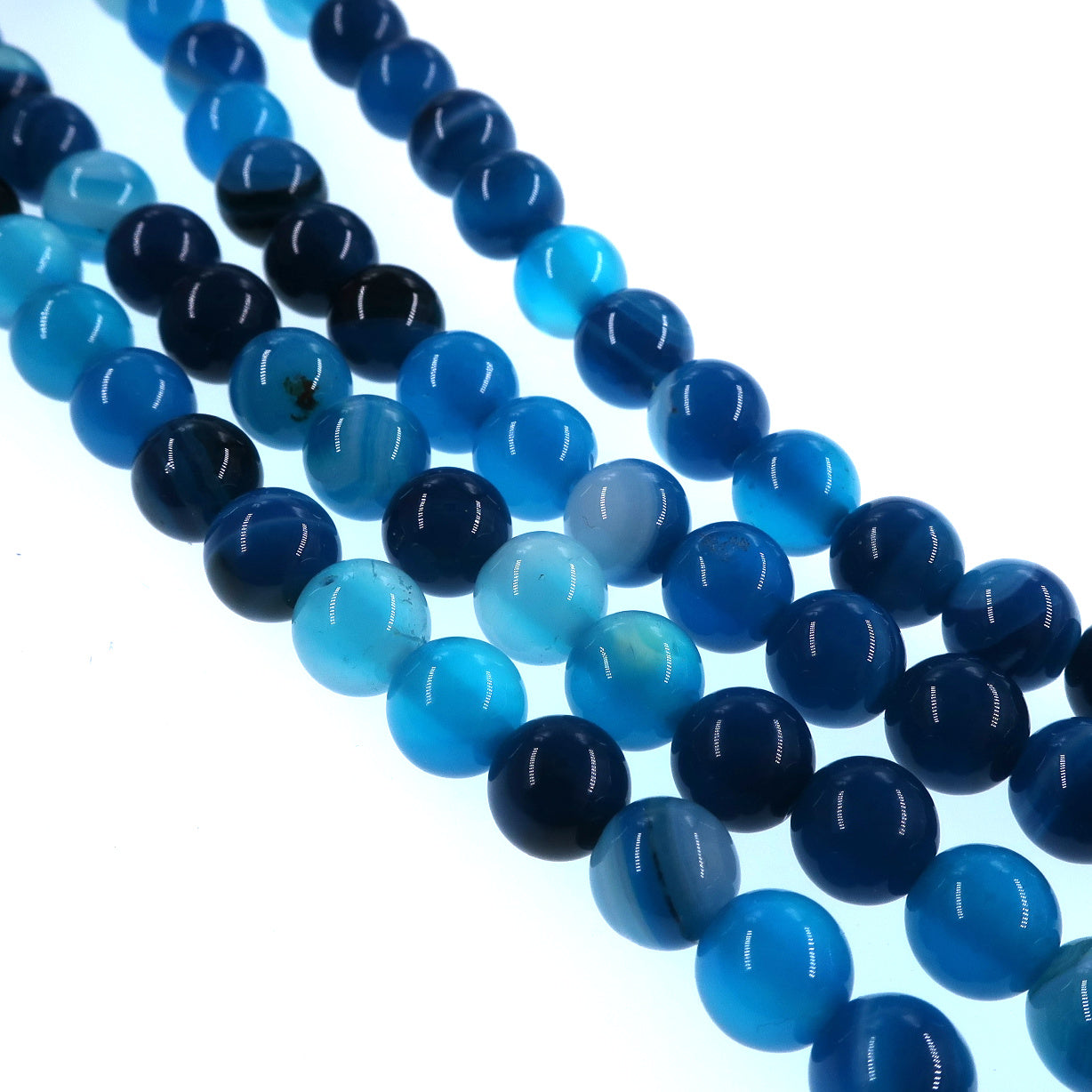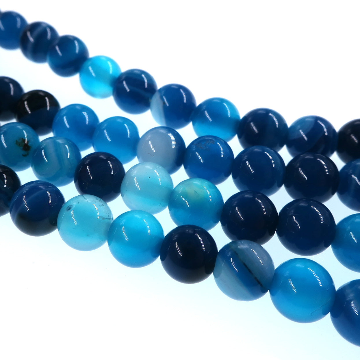 6mm blue striped agate beads - round - smooth - 15" strand - approx. 60 beads ST1-4