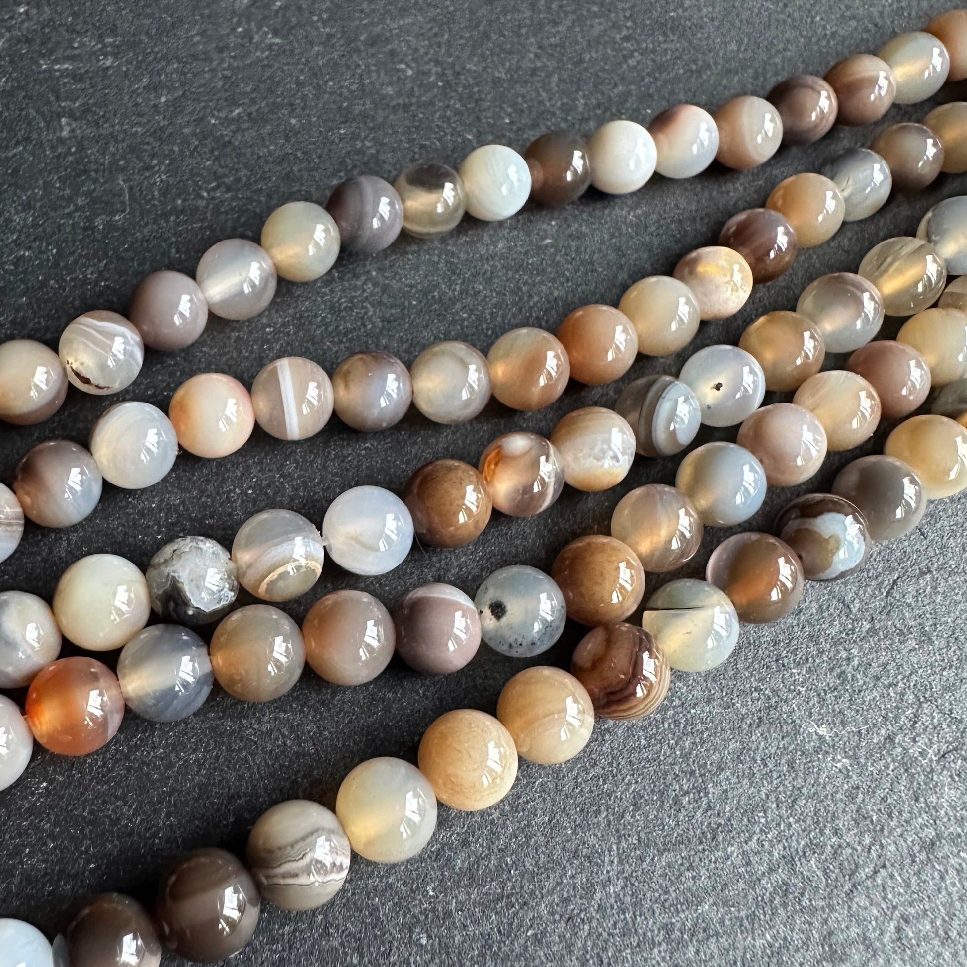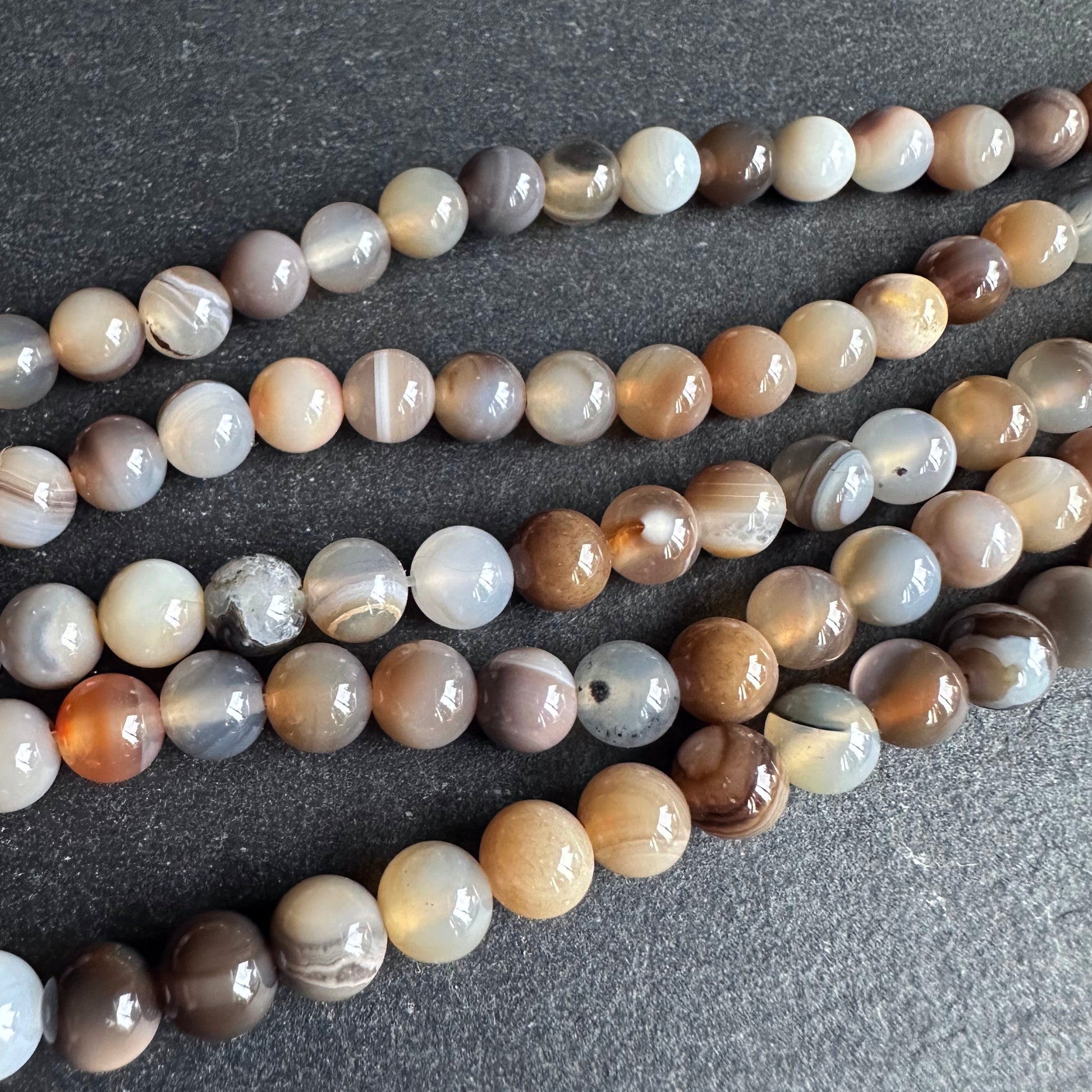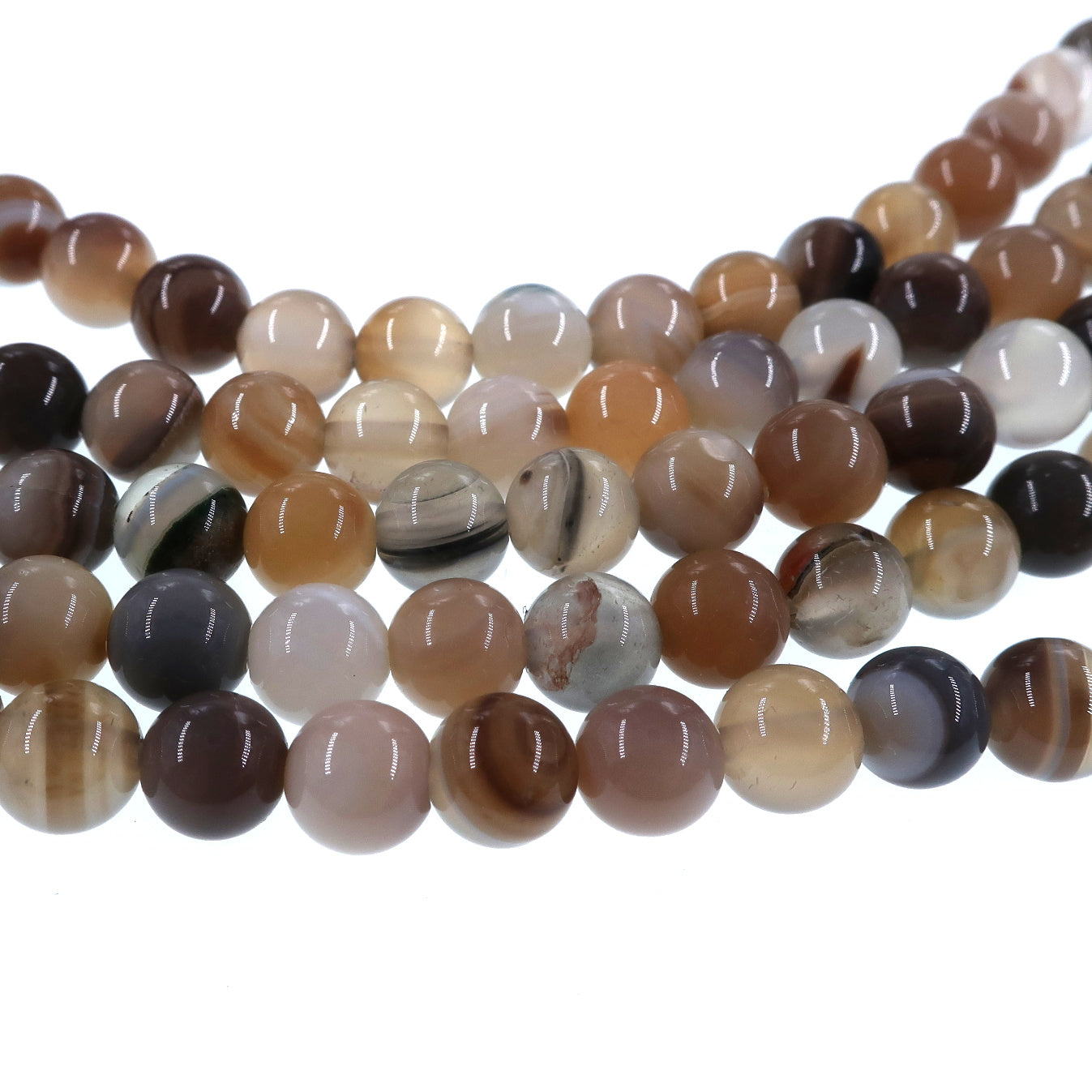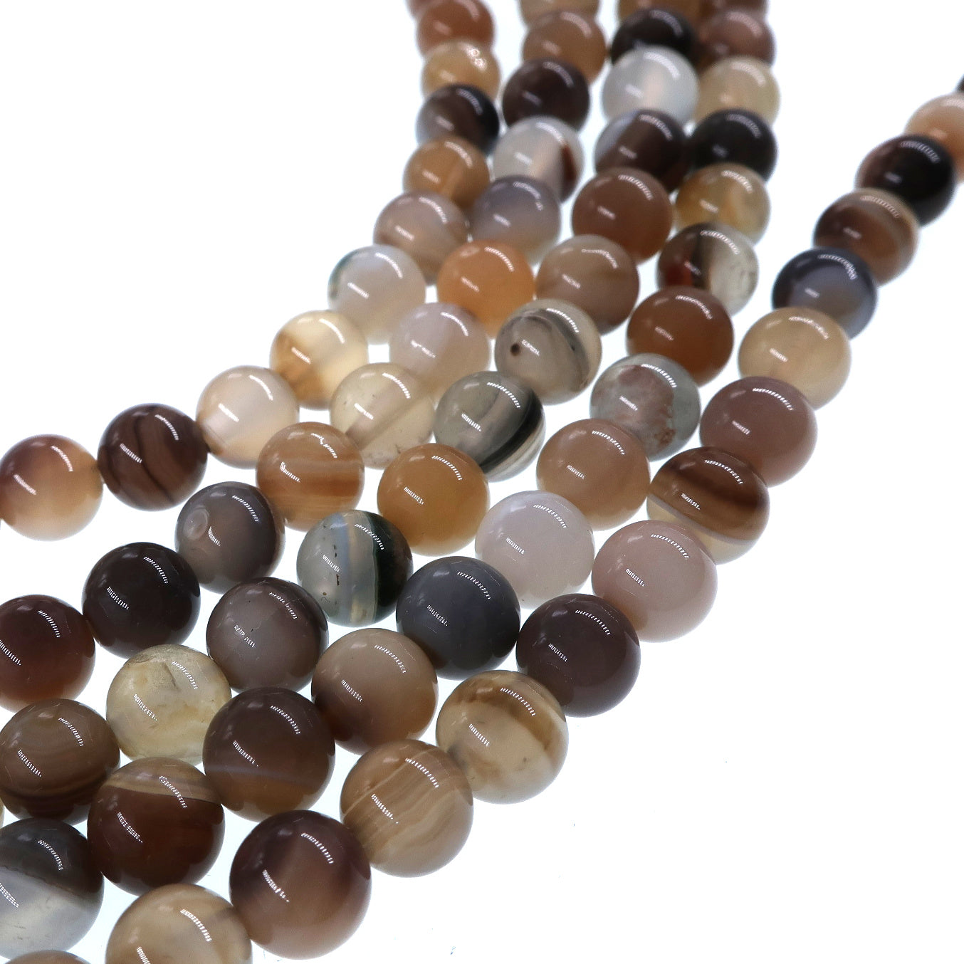 6mm dark gray striped agate beads - round - smooth - 15" strand - approx. 60 beads ST1-8