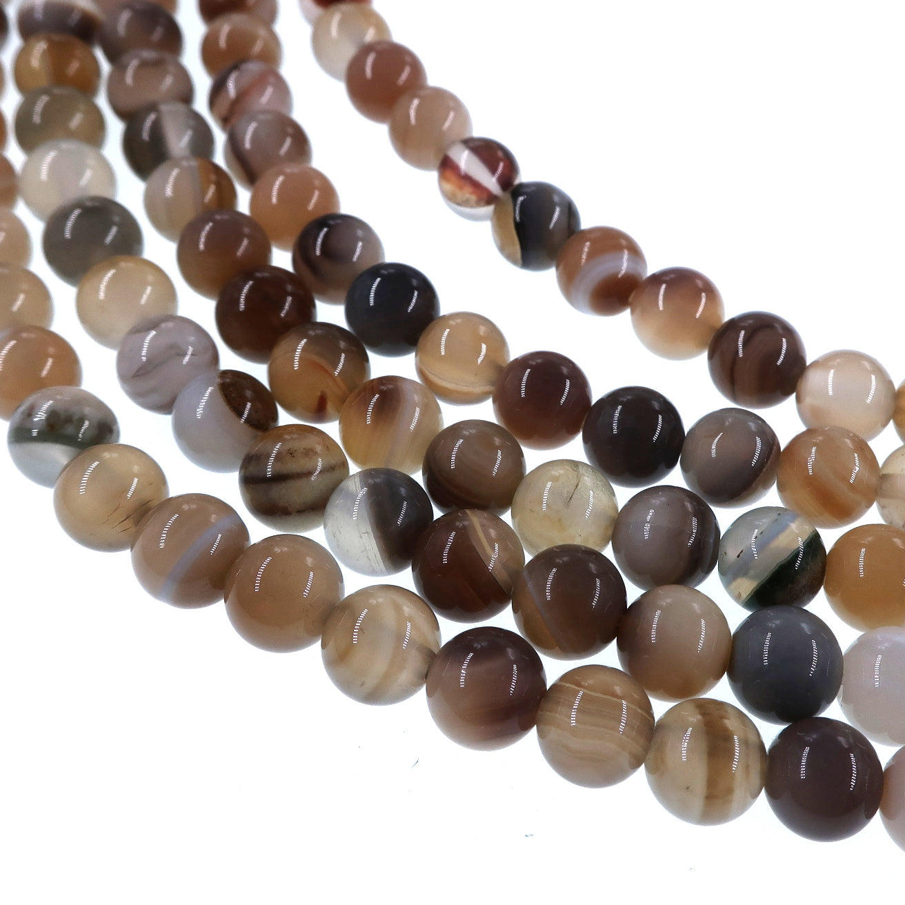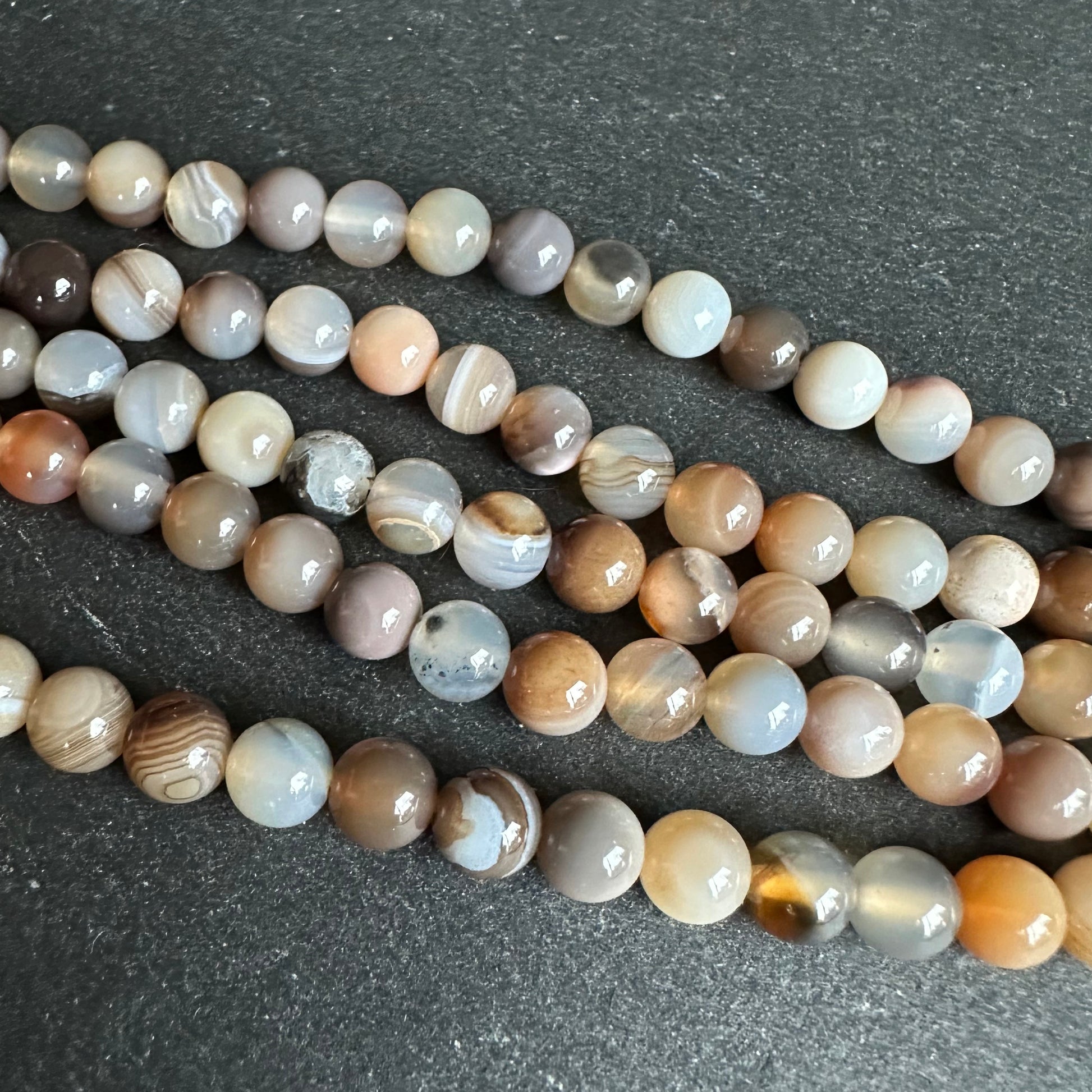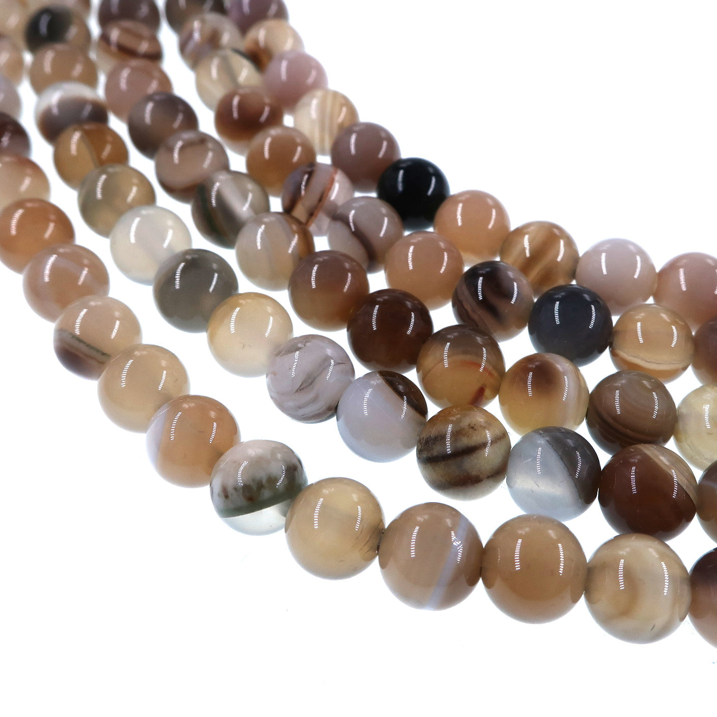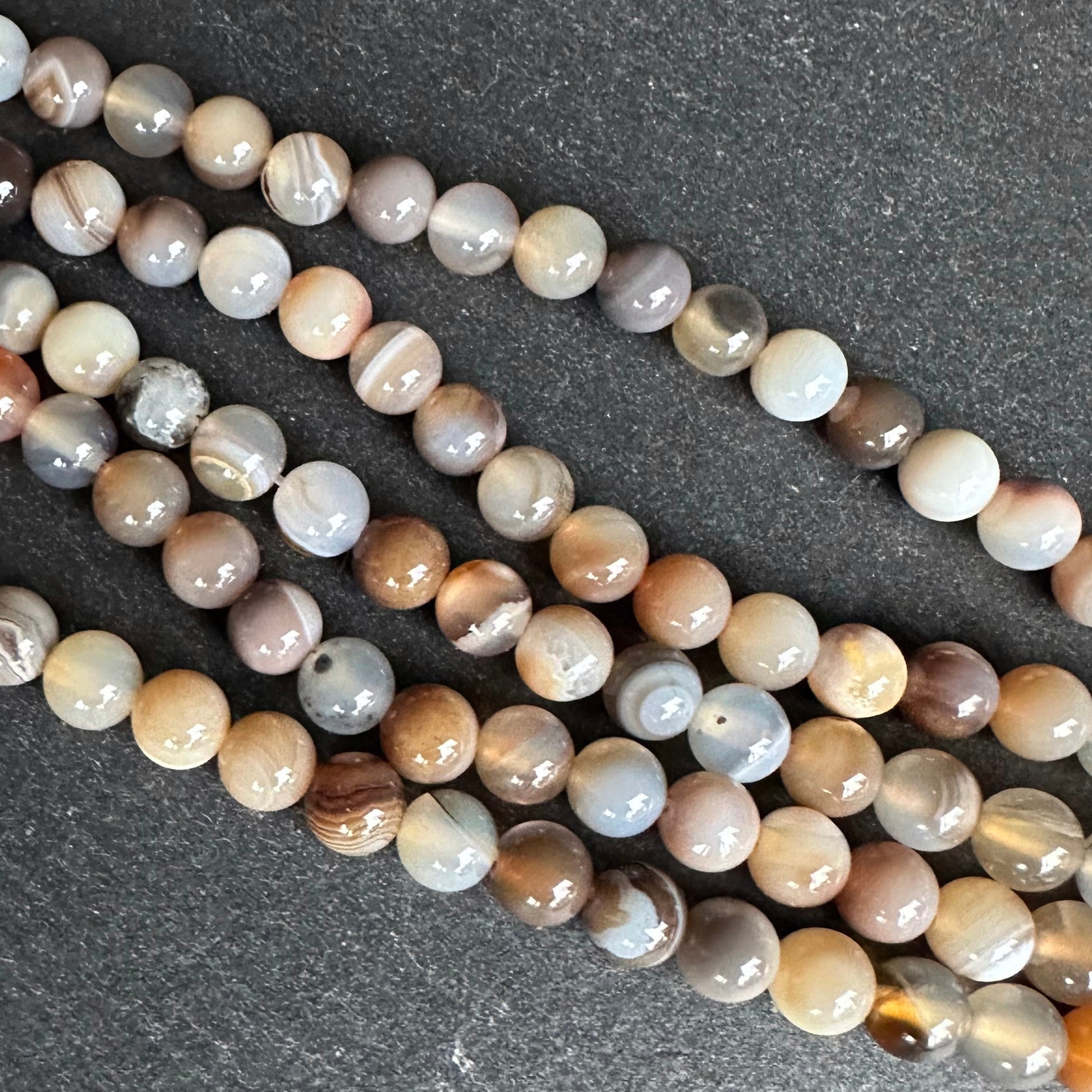 6mm dark gray striped agate beads - round - smooth - 15" strand - approx. 60 beads ST1-8