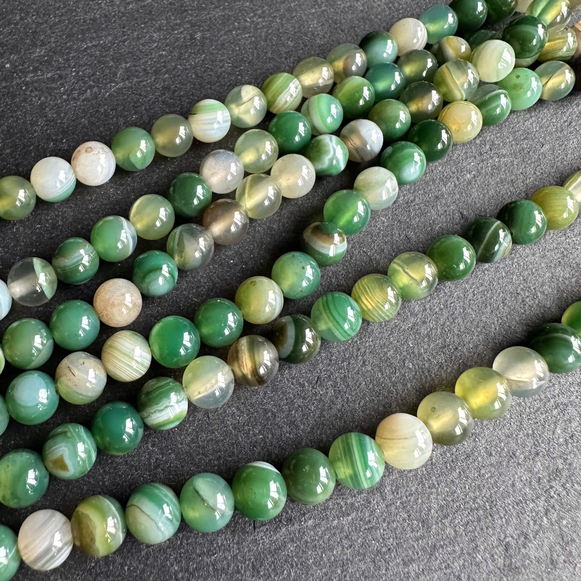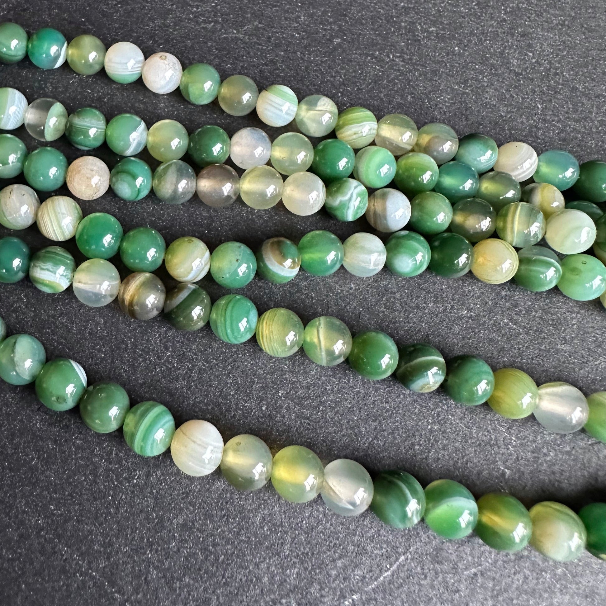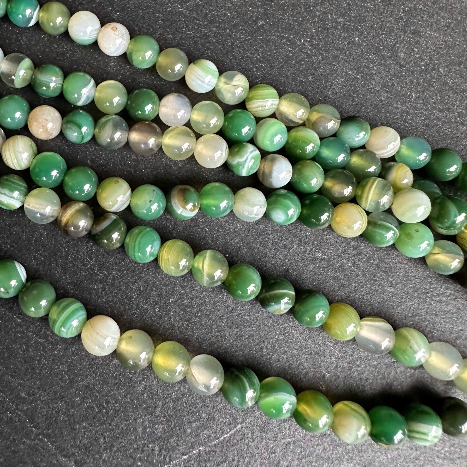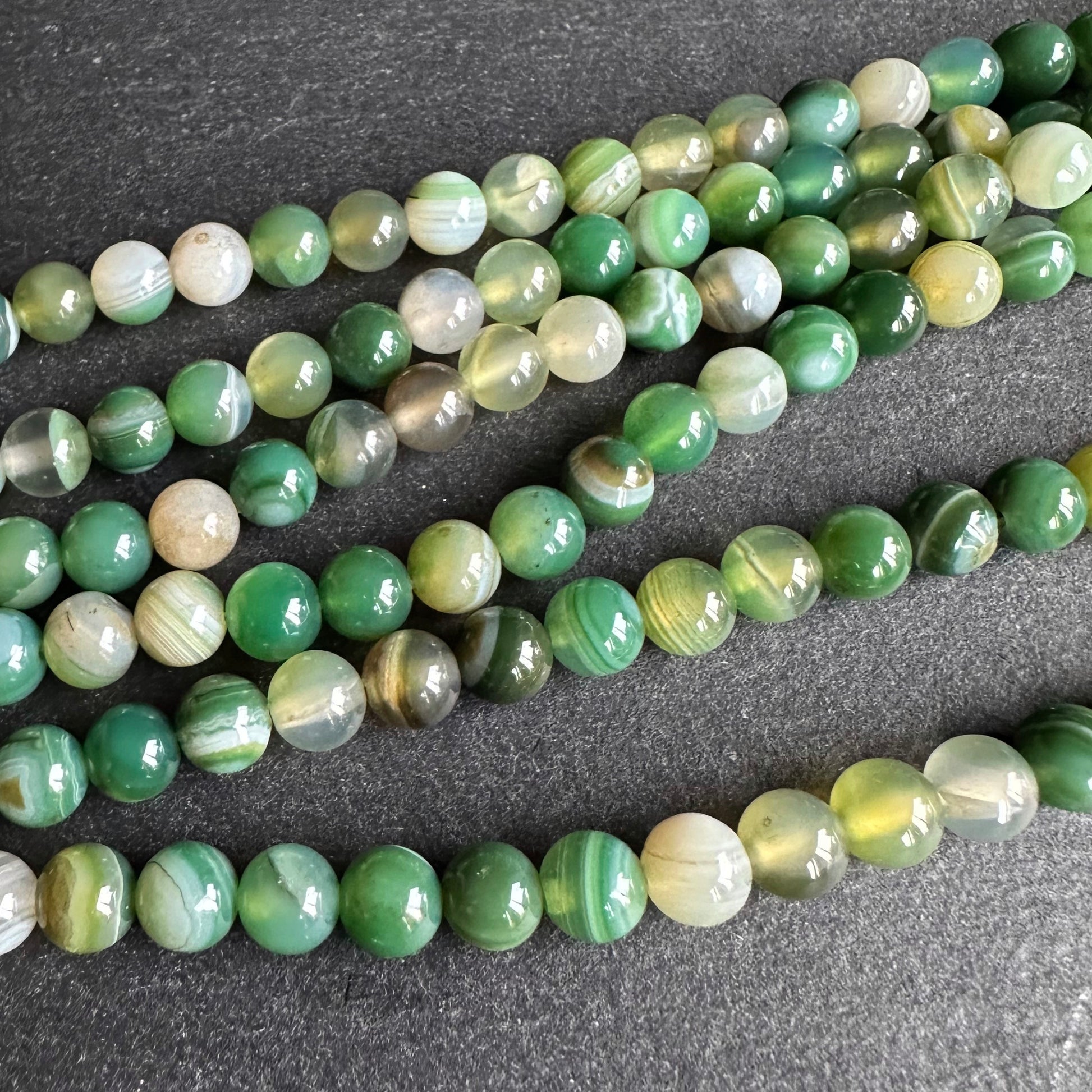 6mm fern green striped agate beads - round - smooth - 15" stand - approx. 60 beads ST1-3