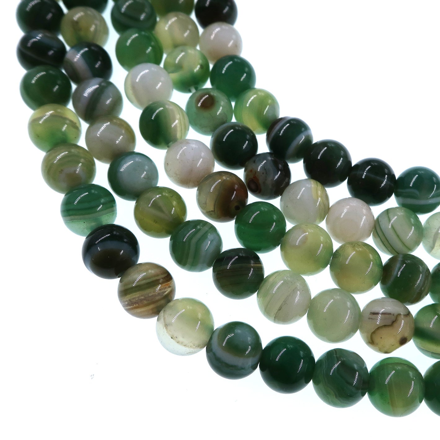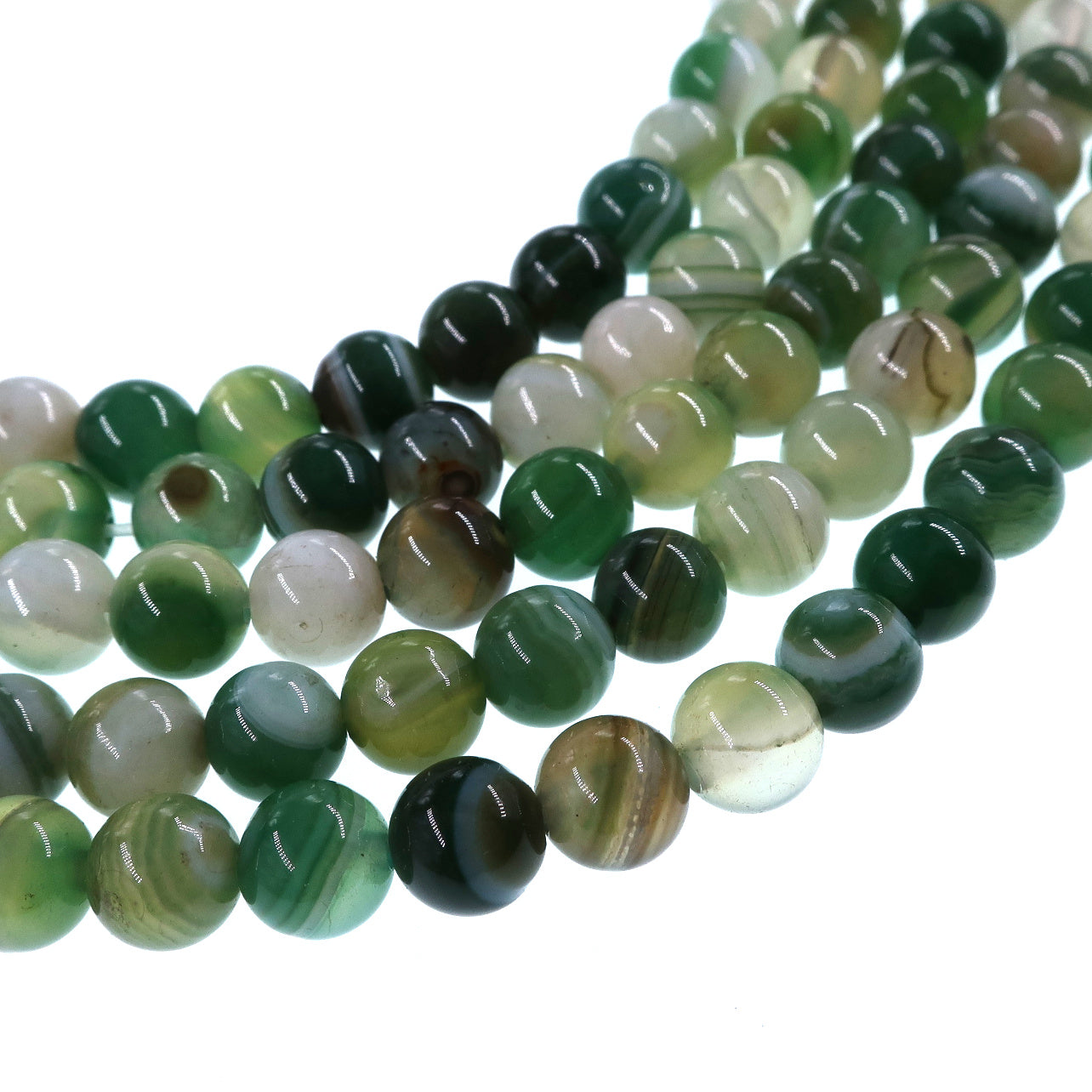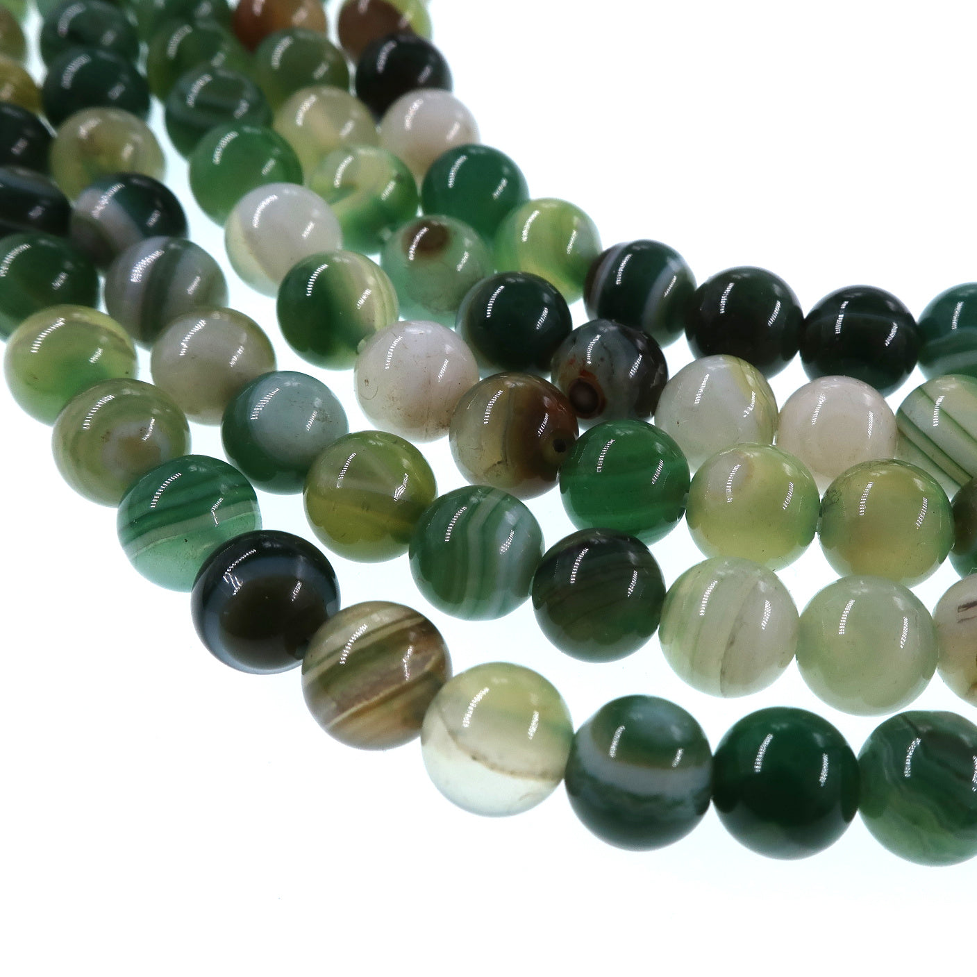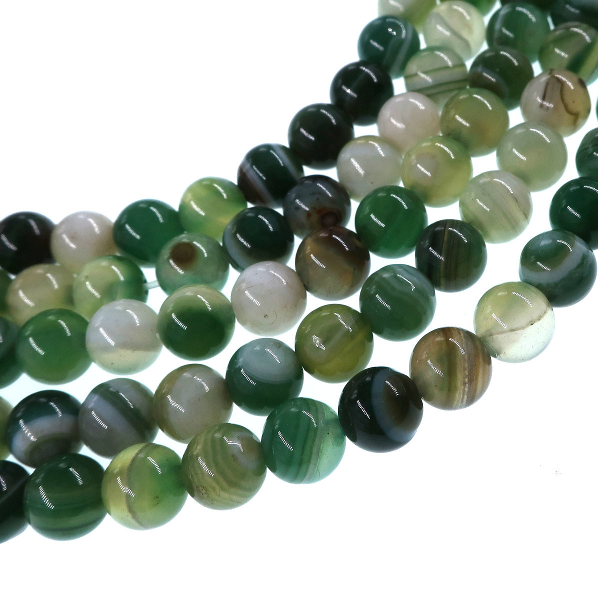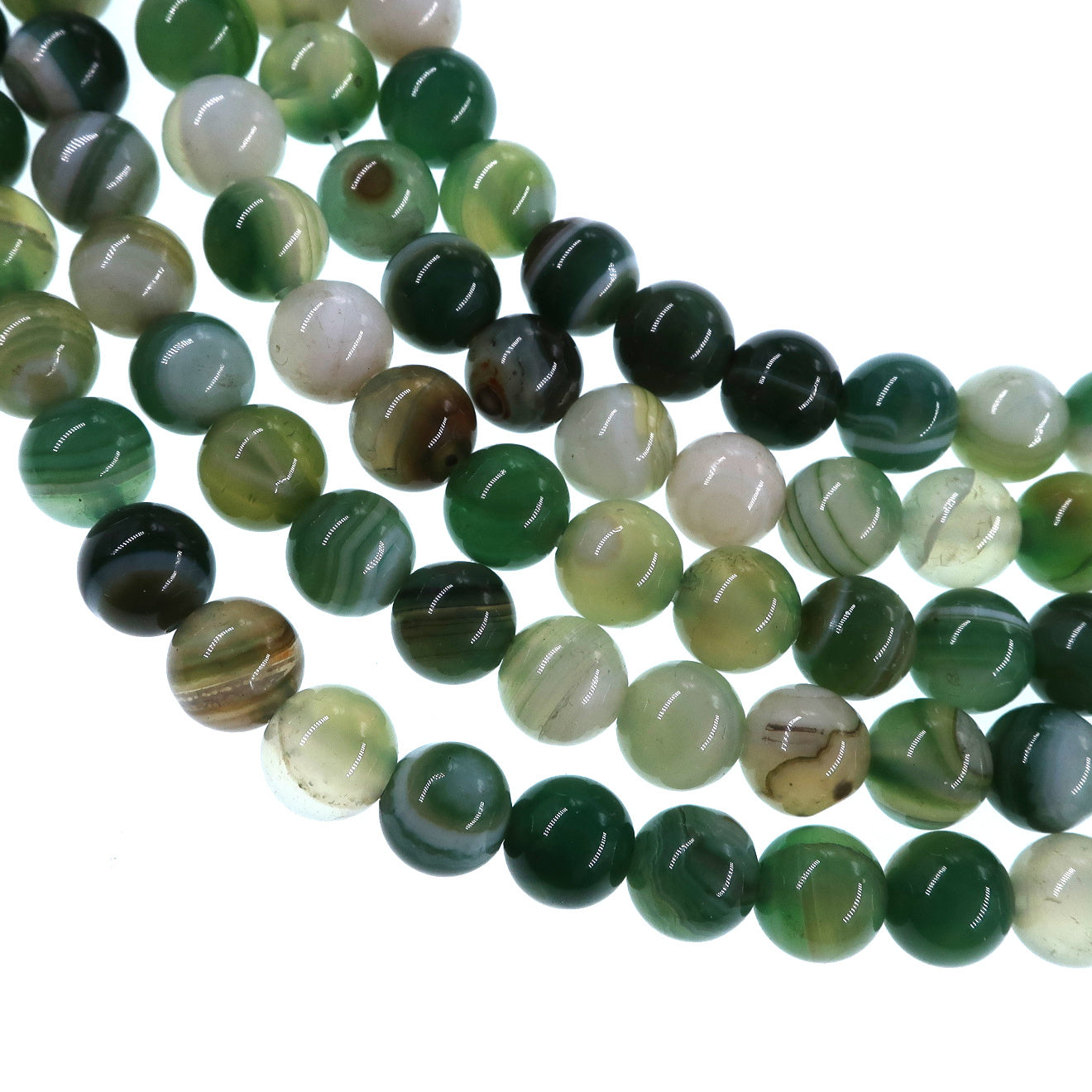 6mm fern green striped agate beads - round - smooth - 15" stand - approx. 60 beads ST1-3