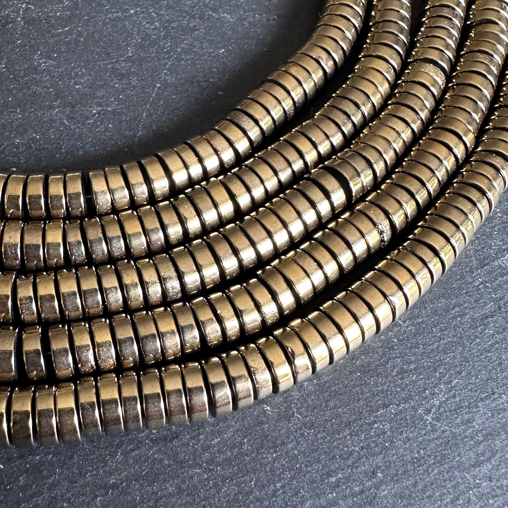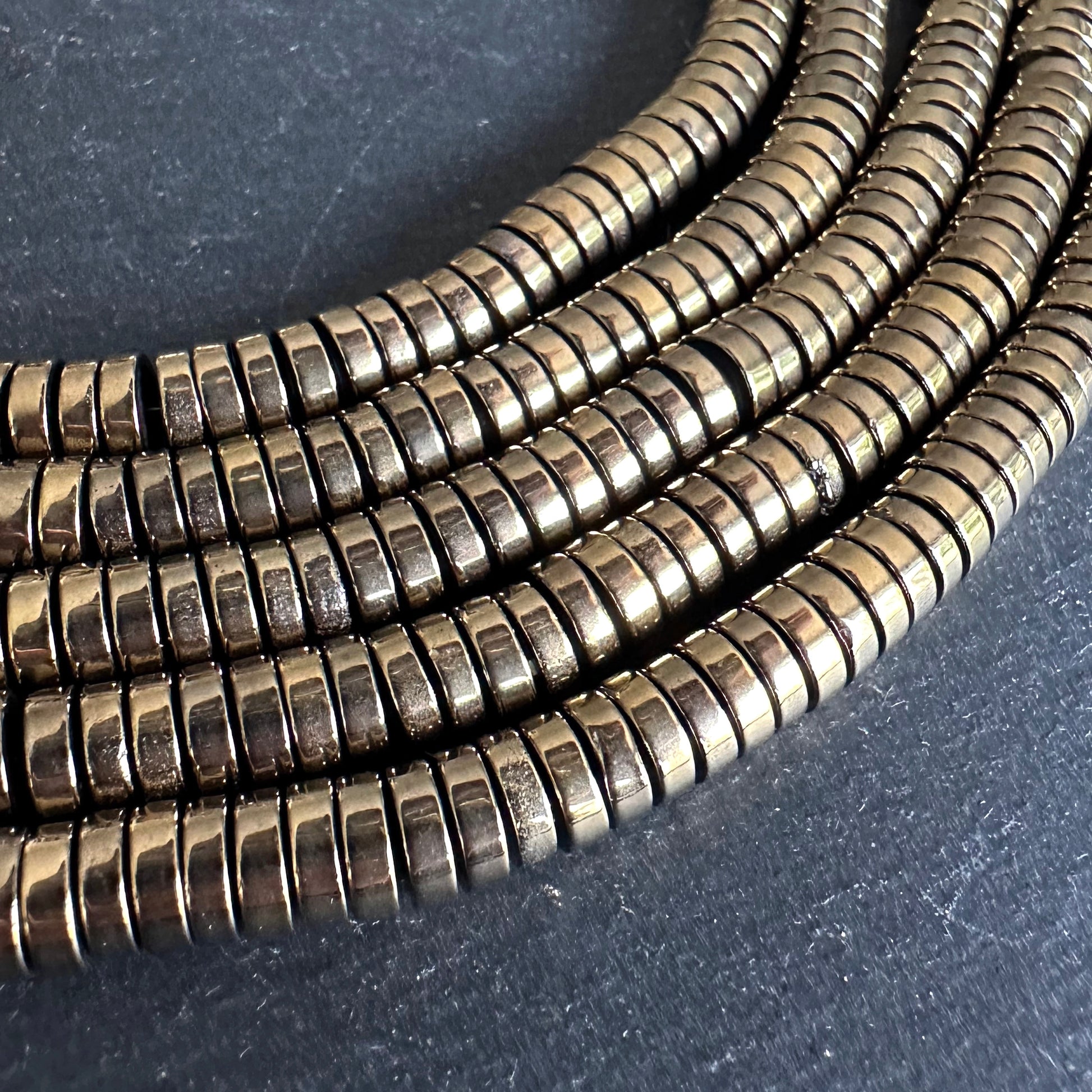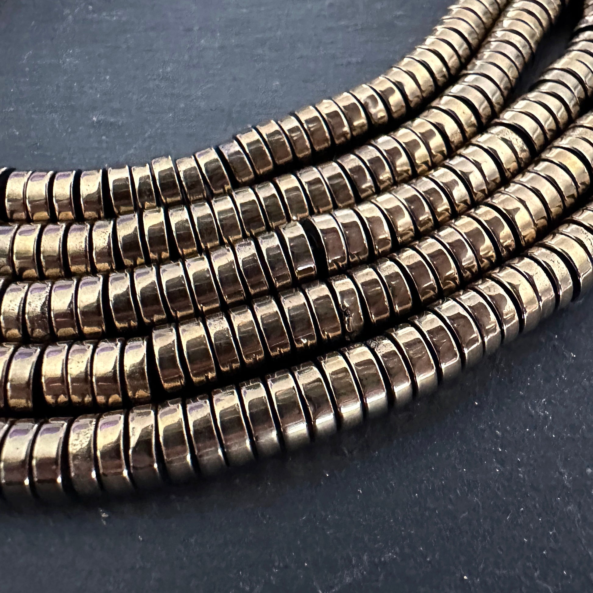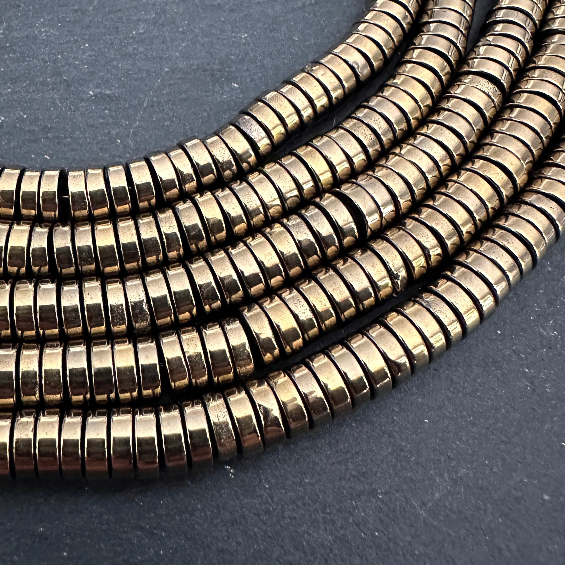 6mm light gold electroplated hematite - heishi - smooth - 15" strand - approx. 195 beads