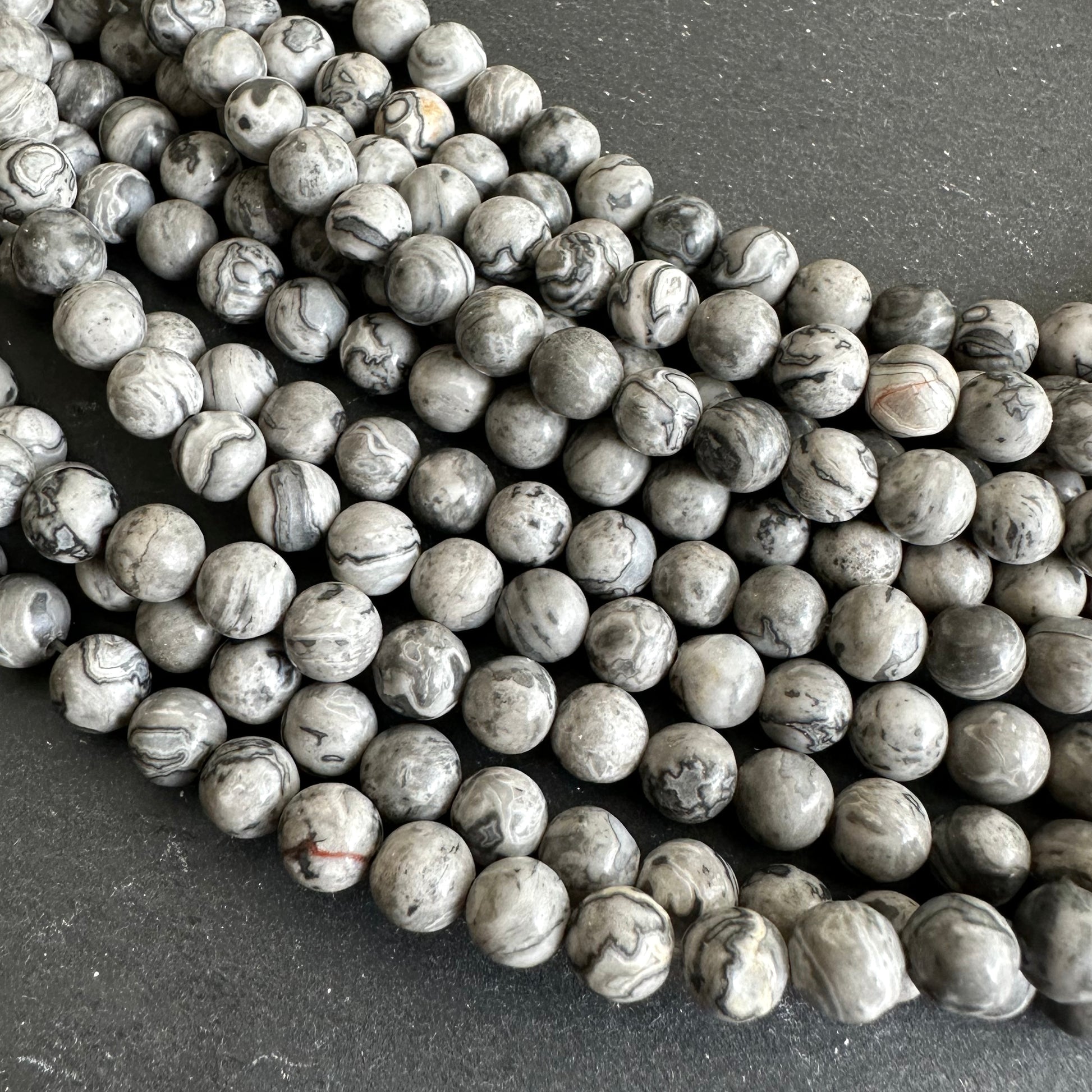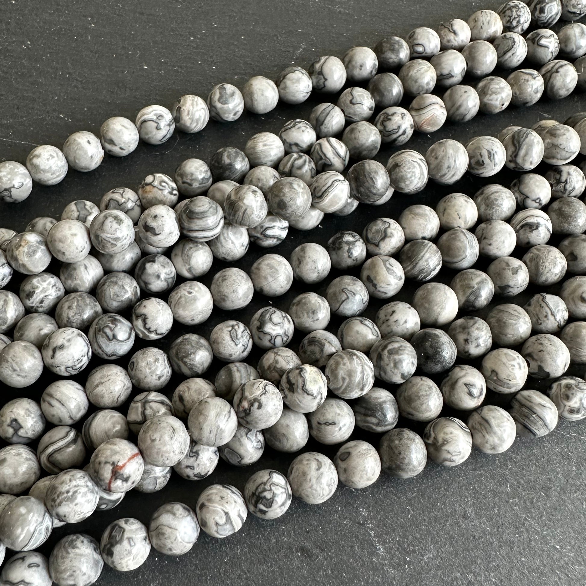 6mm netstone jasper - round - smooth - 15" strand - approx. 65 beads