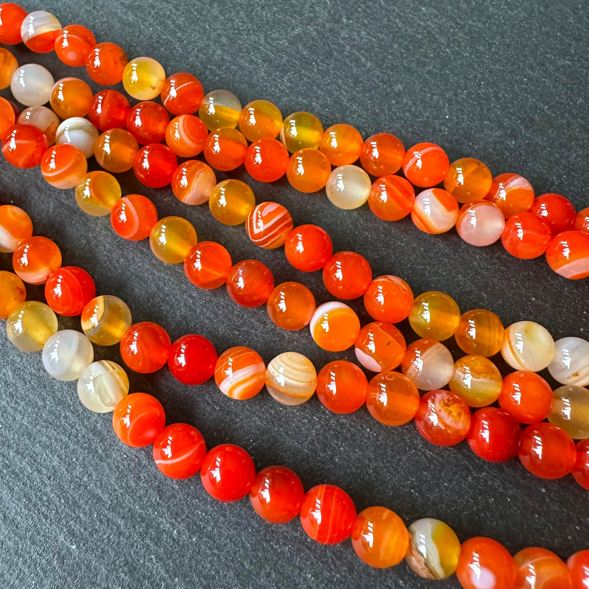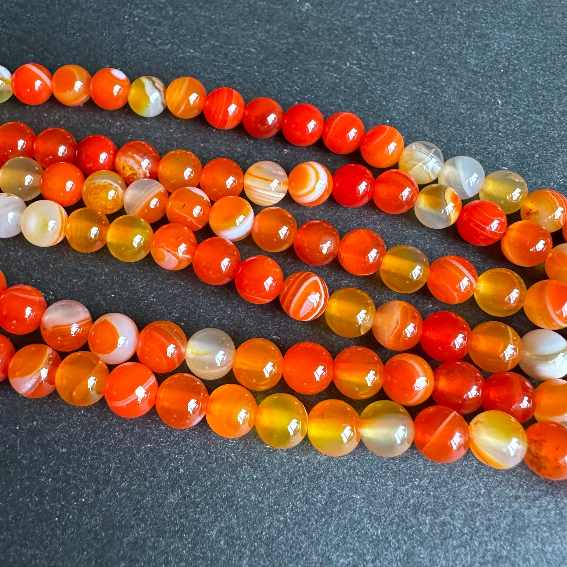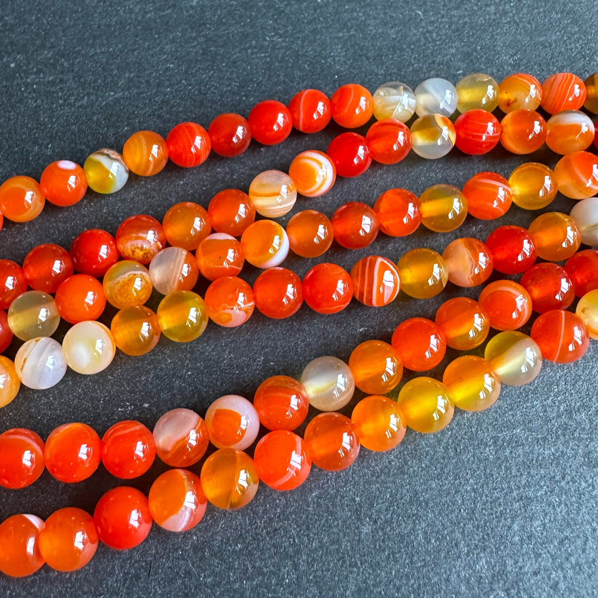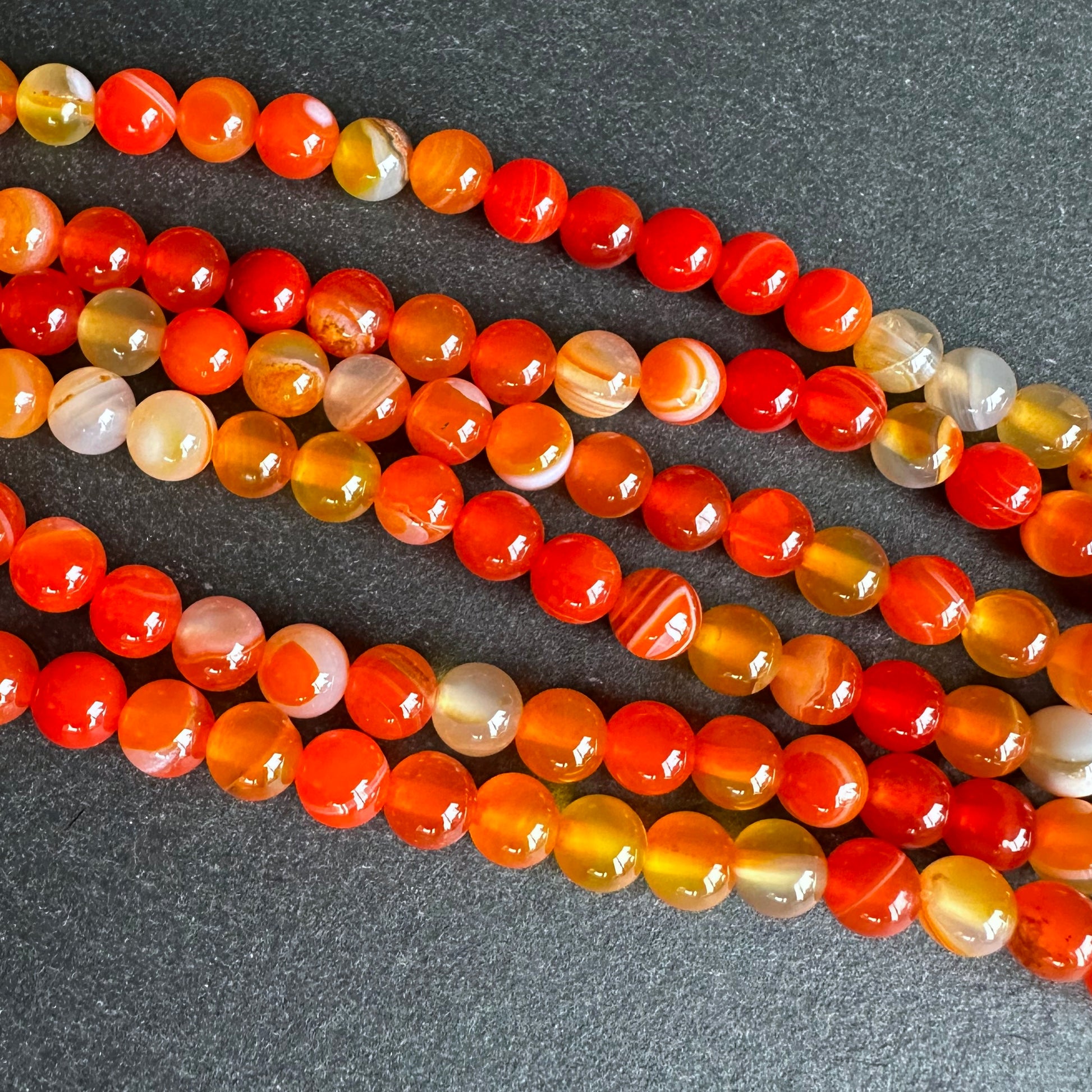 6mm orange striped agate beads - round - smooth - 15" strand - approx. 60 beads ST1-14