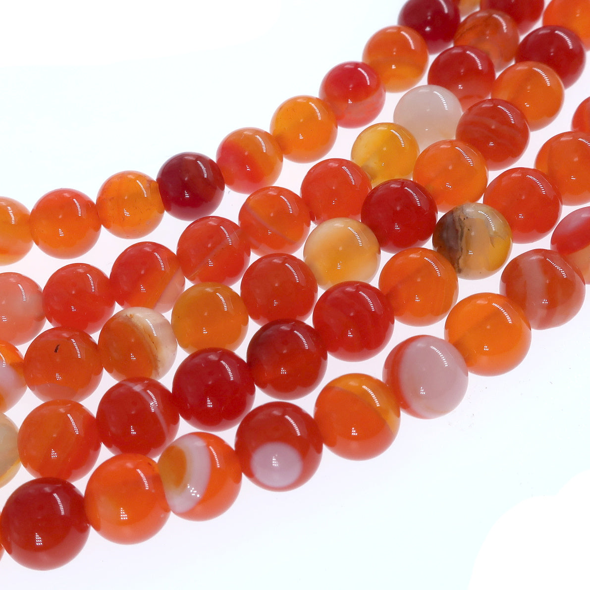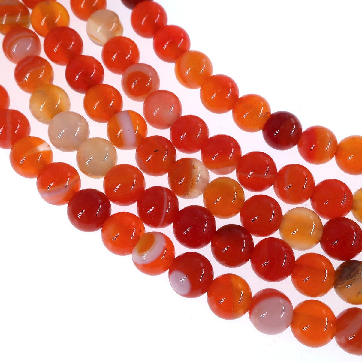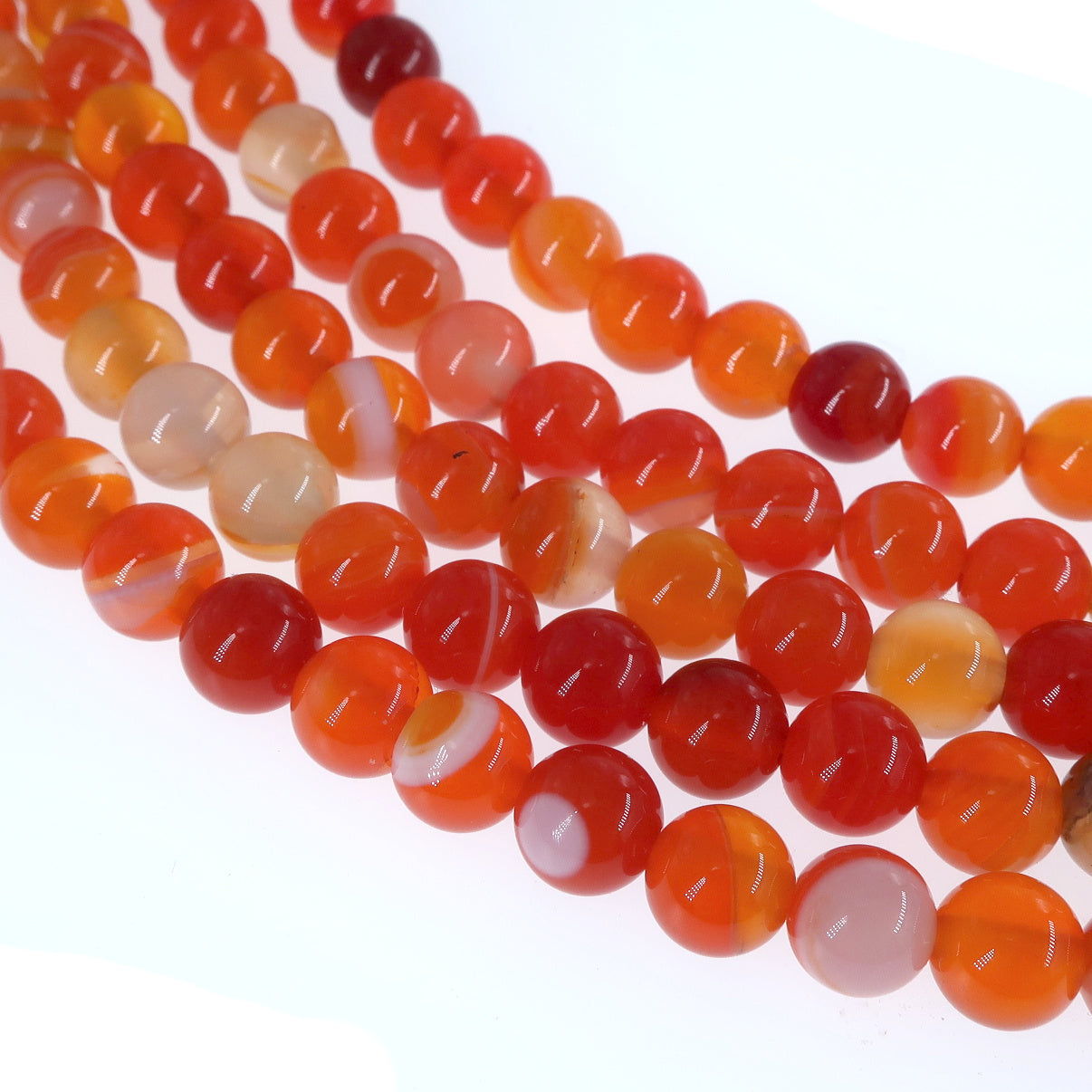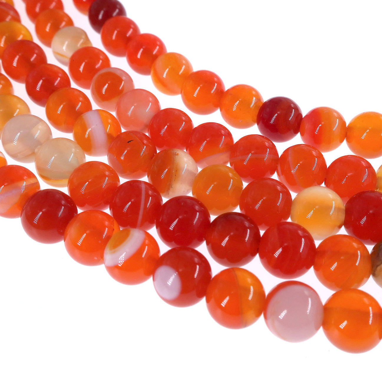 6mm orange striped agate beads - round - smooth - 15" strand - approx. 60 beads ST1-14
