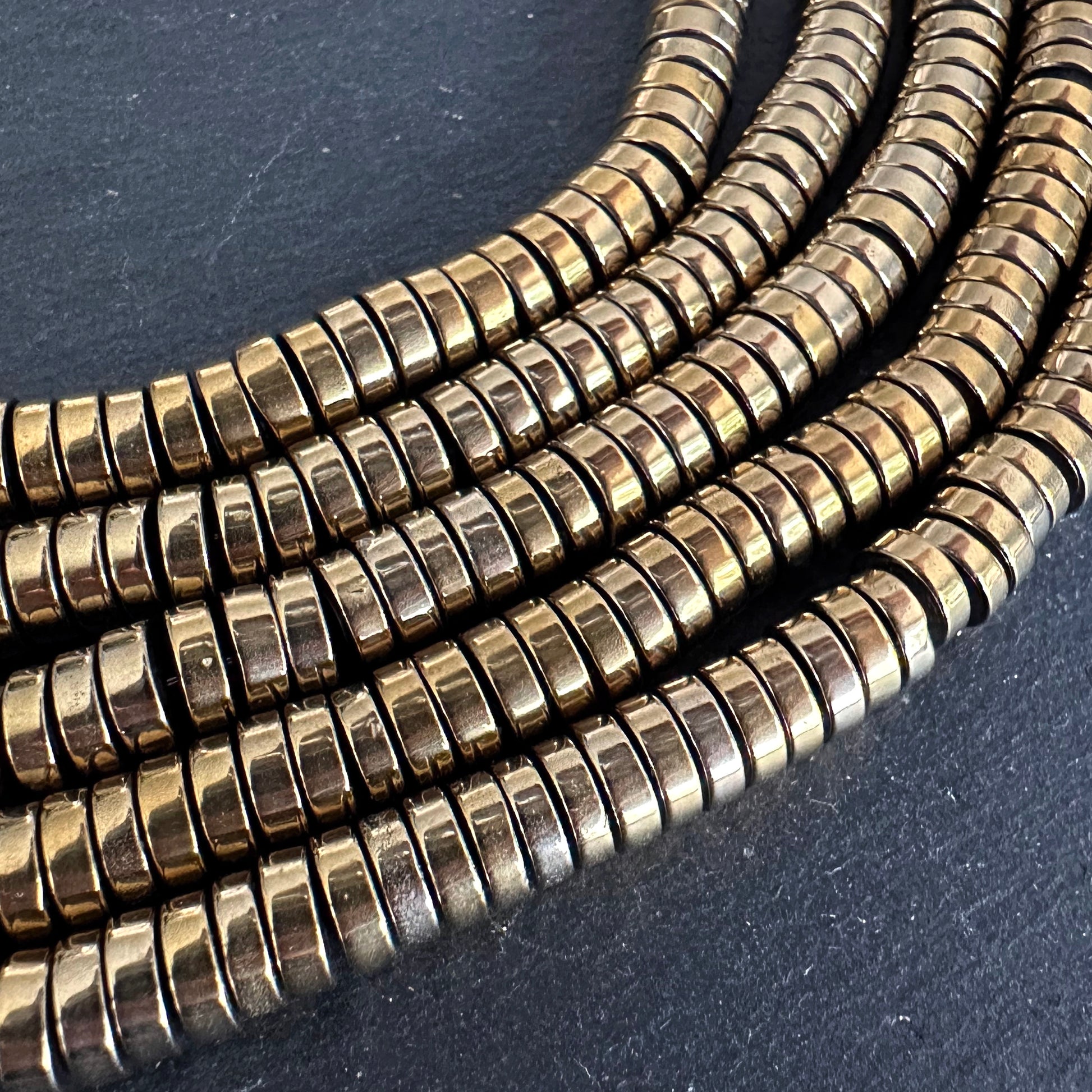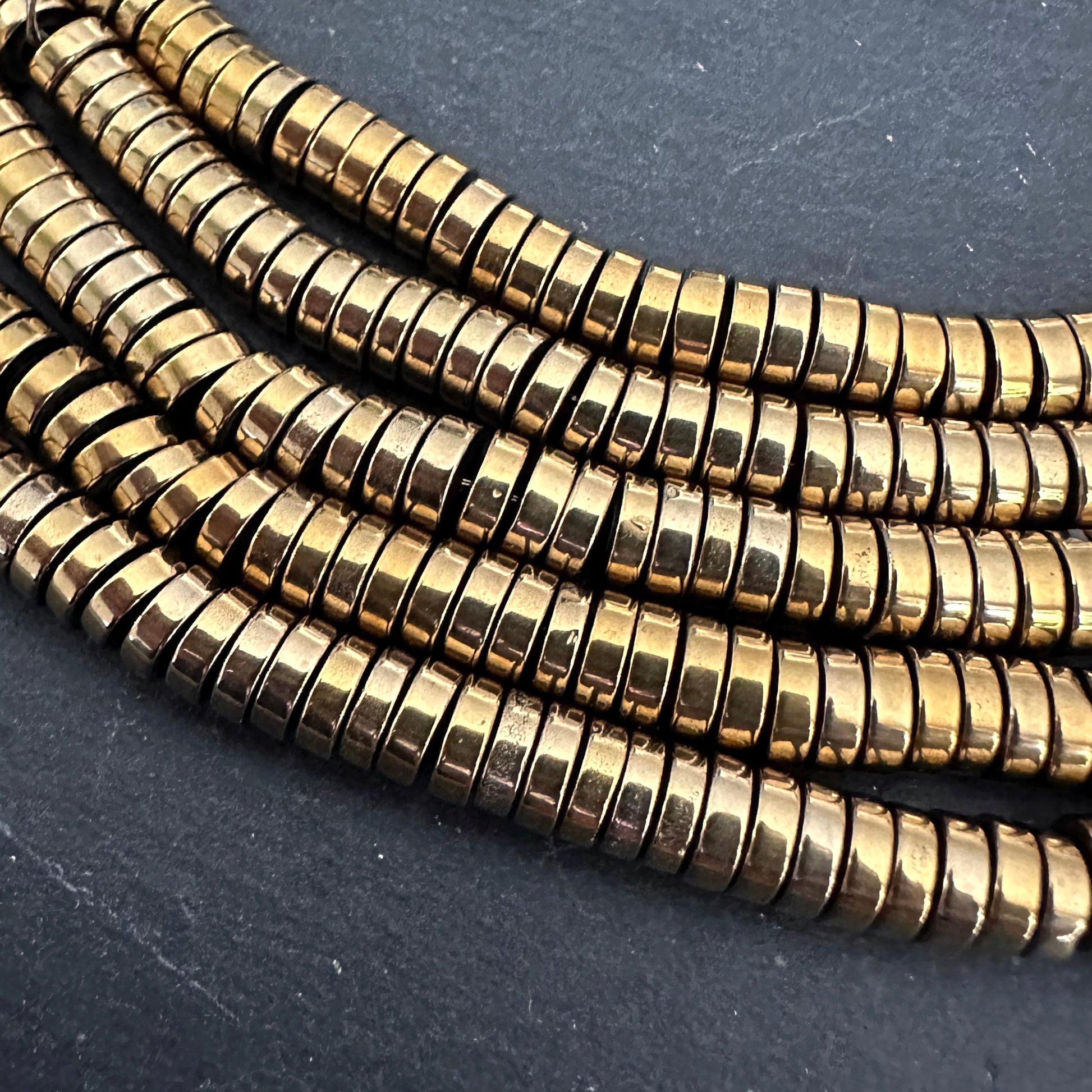 6mm gold electroplated hematite beads - heishi - smooth - 15" strand - approx. 195 beads