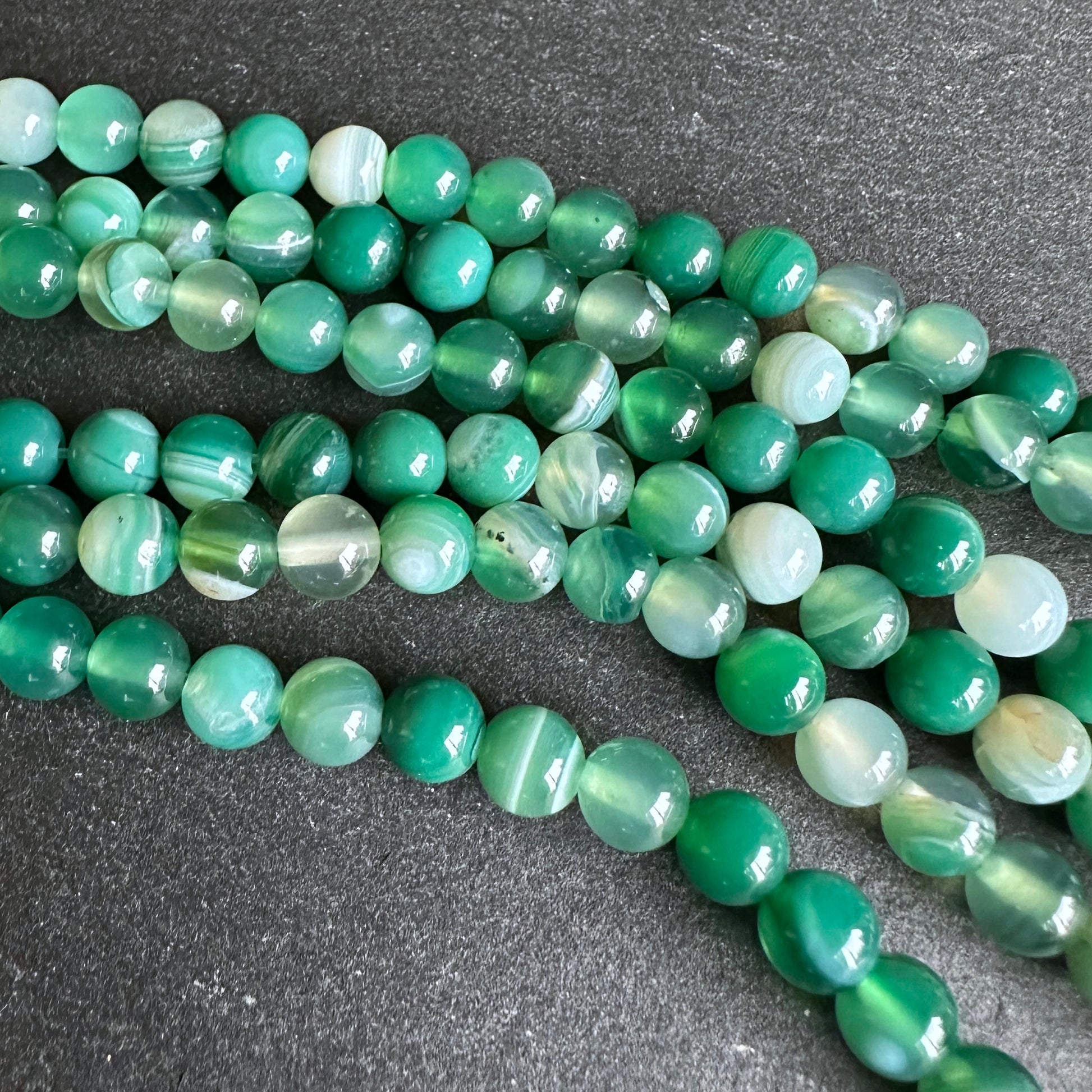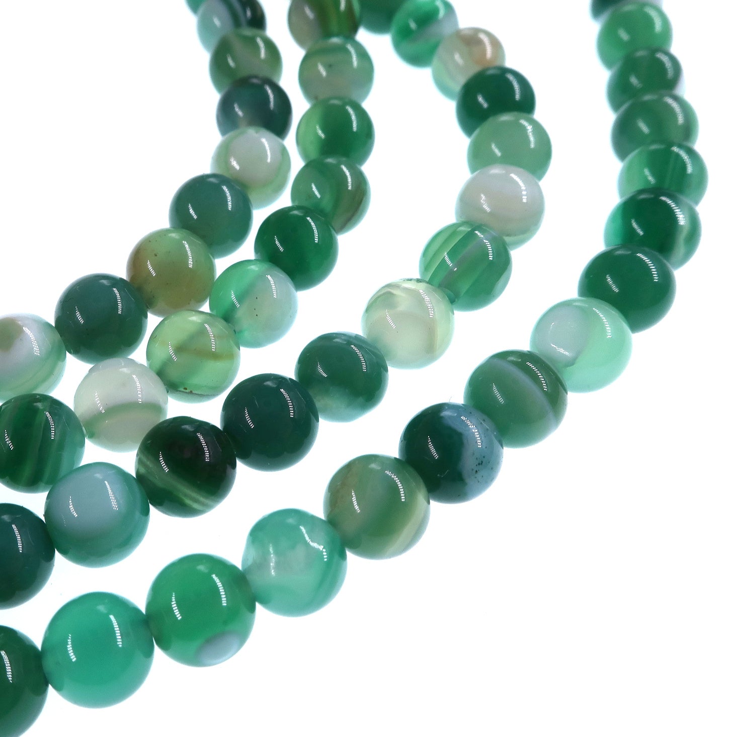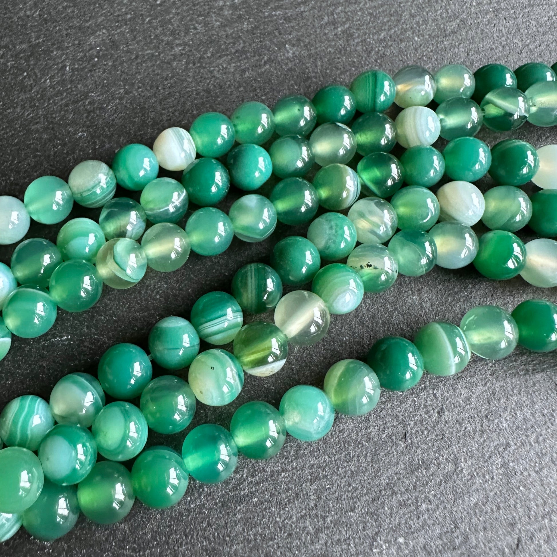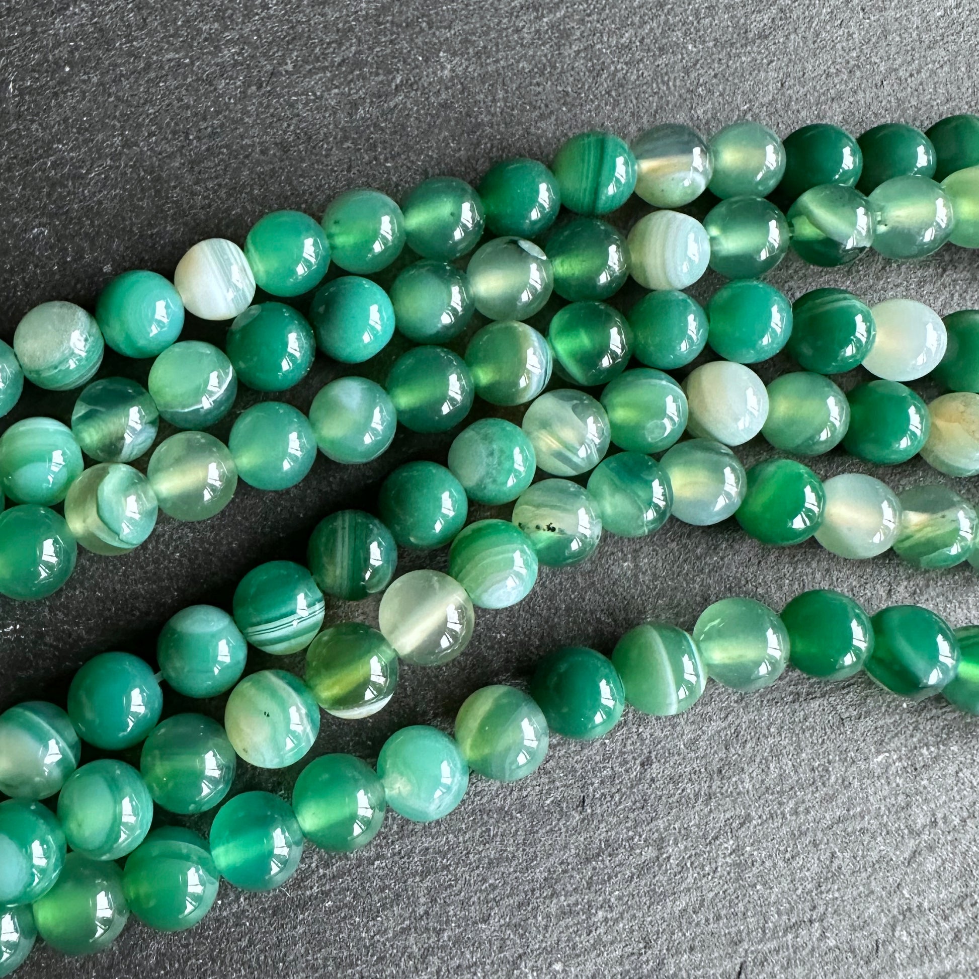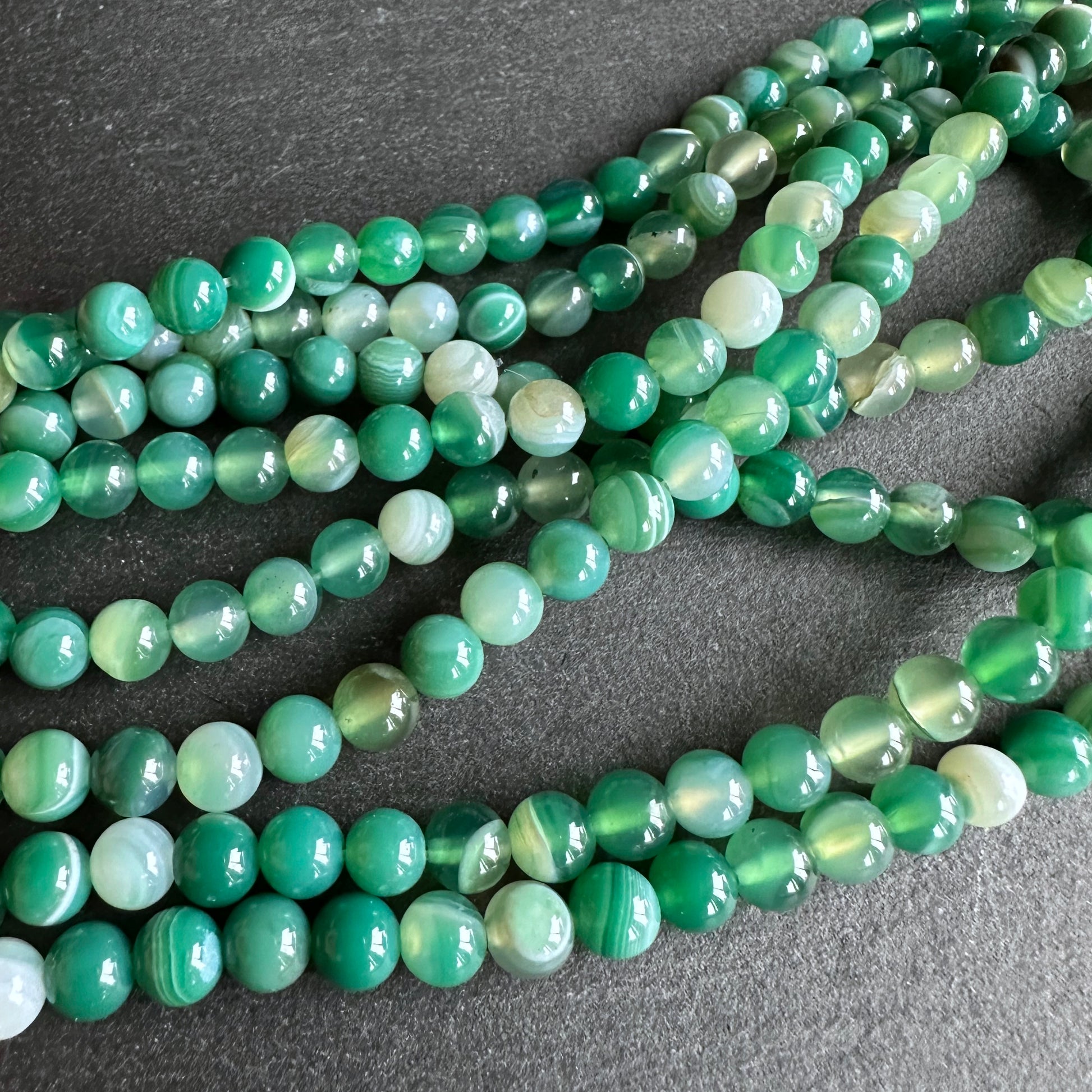 6mm seagreen striped agate beads - round - smooth - 15" strand - approx. 60 beads ST1-10