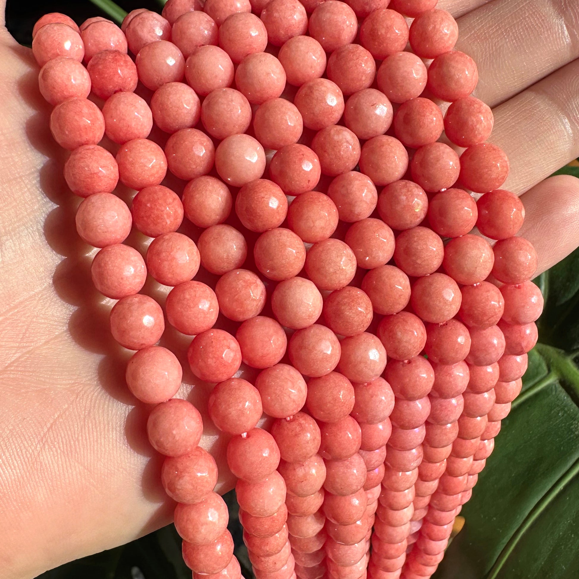 8mm coral candy jade (quartz) - round- faceted (dyed) WJ40-4