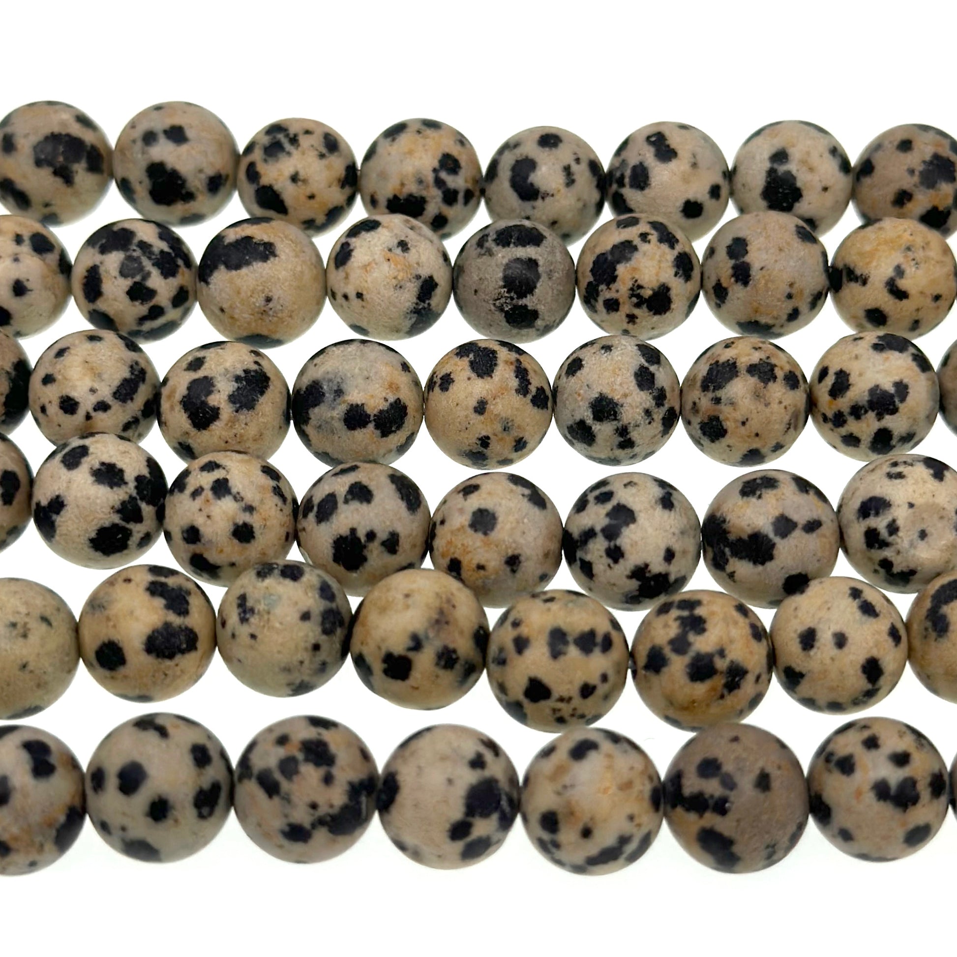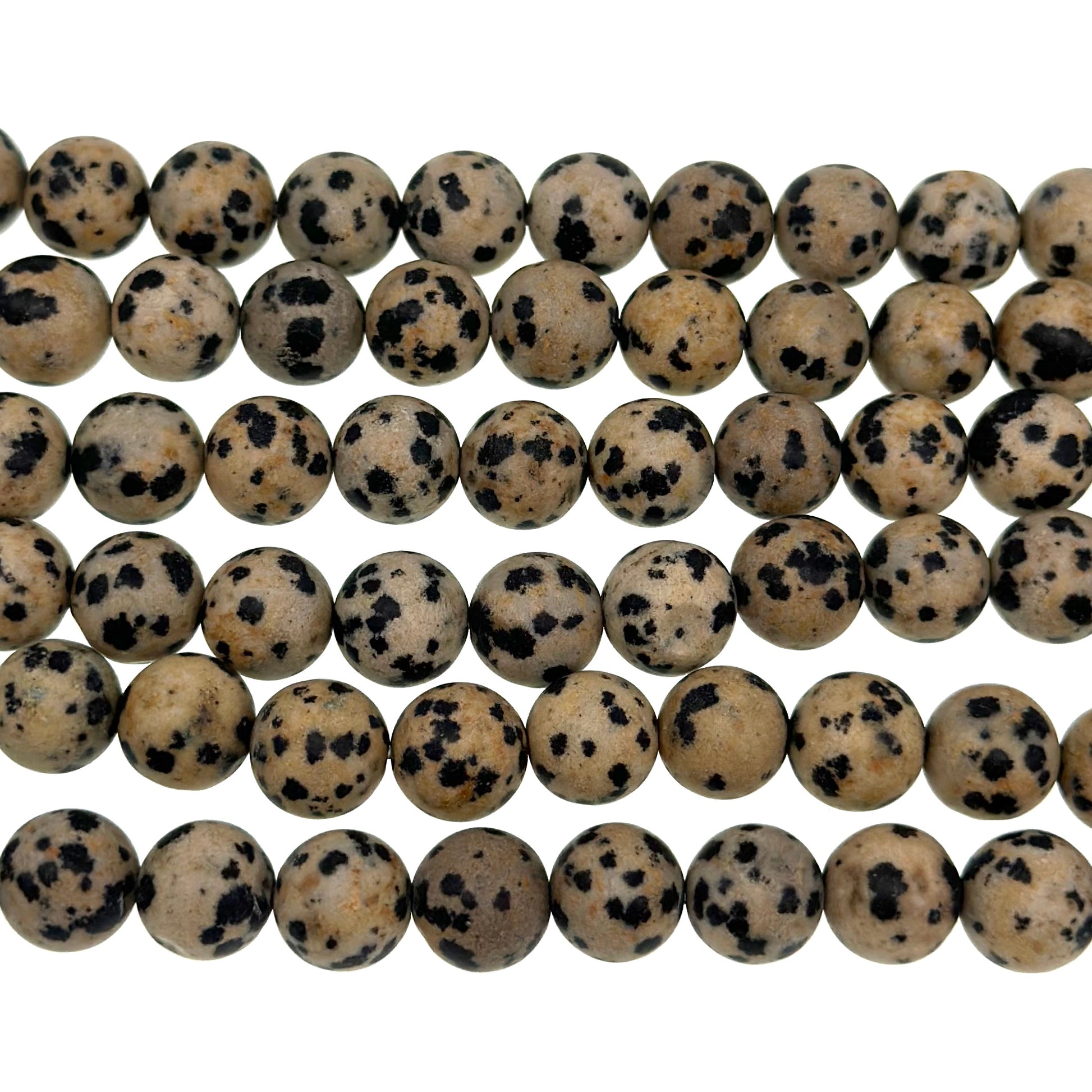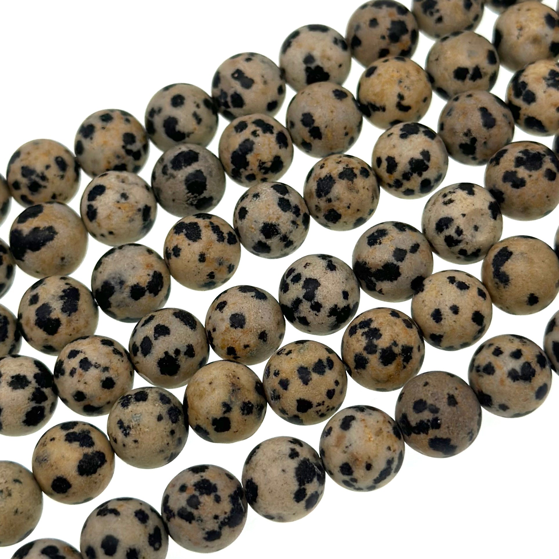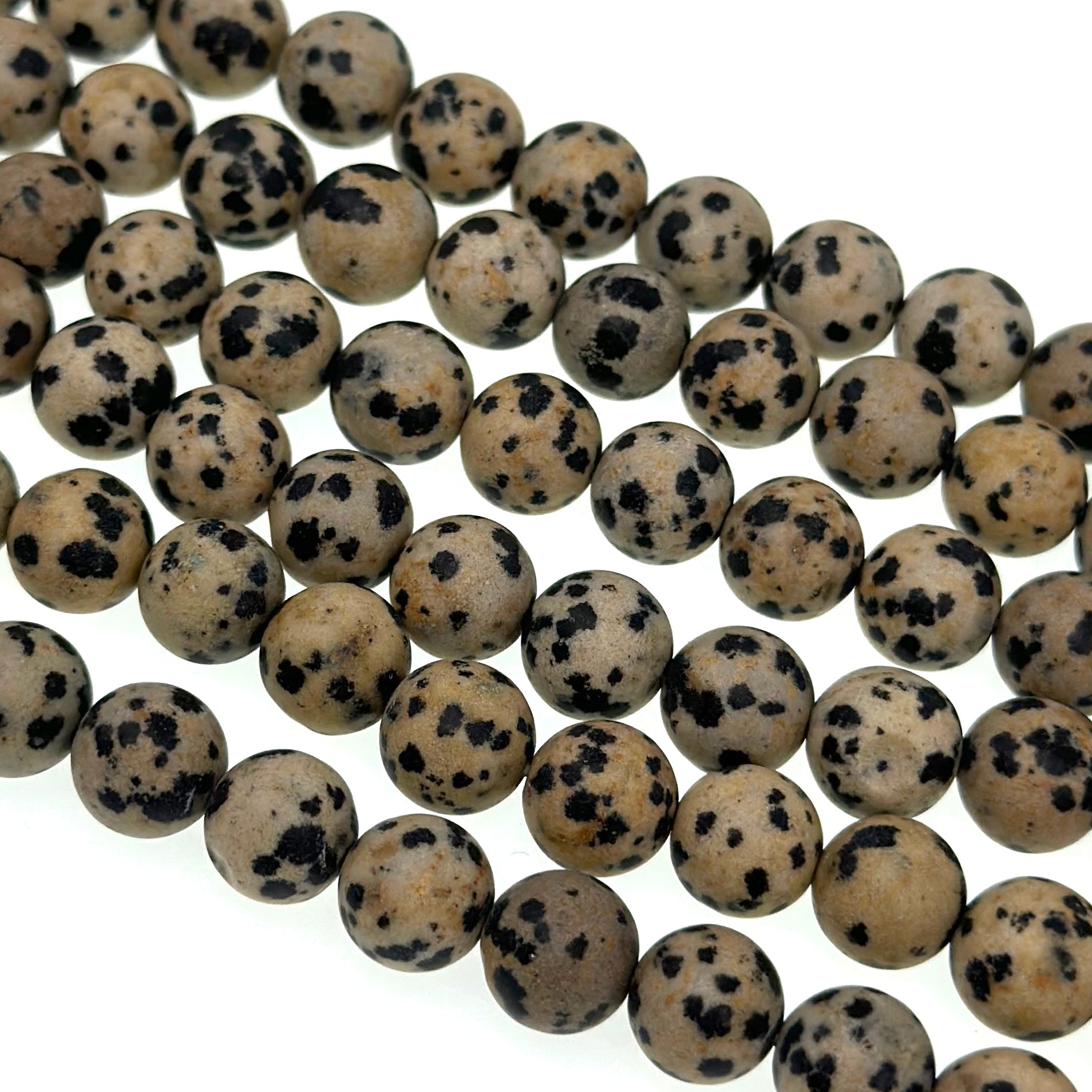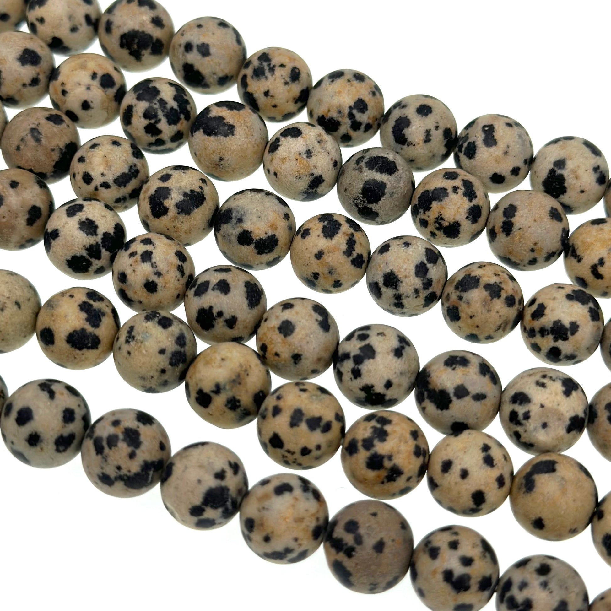 8mm dalmatian jasper beads - round - frosted - 15" strand - approx. 45 beads