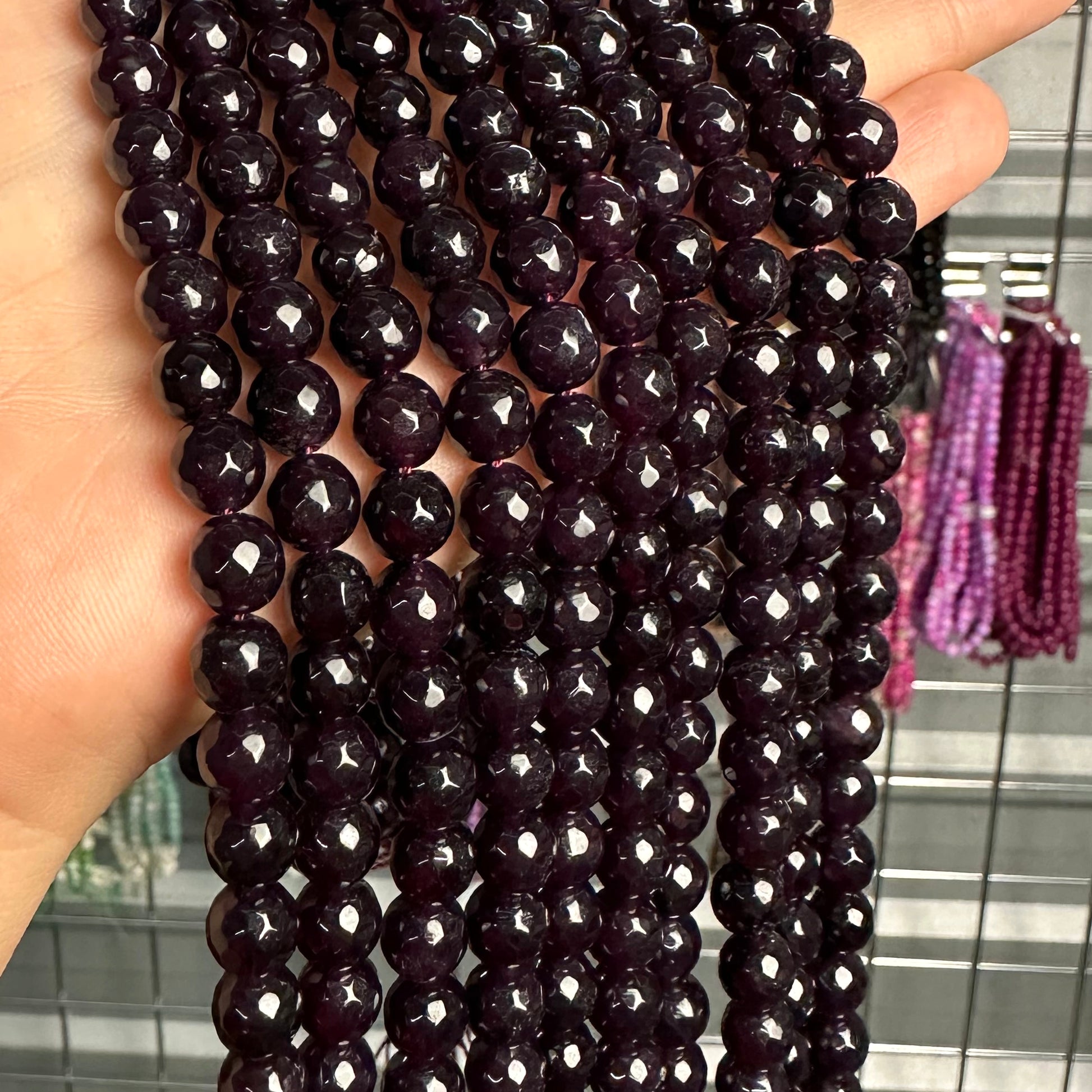 8mm plum candy jade (quartz) - round- faceted (dyed) WJ40-11