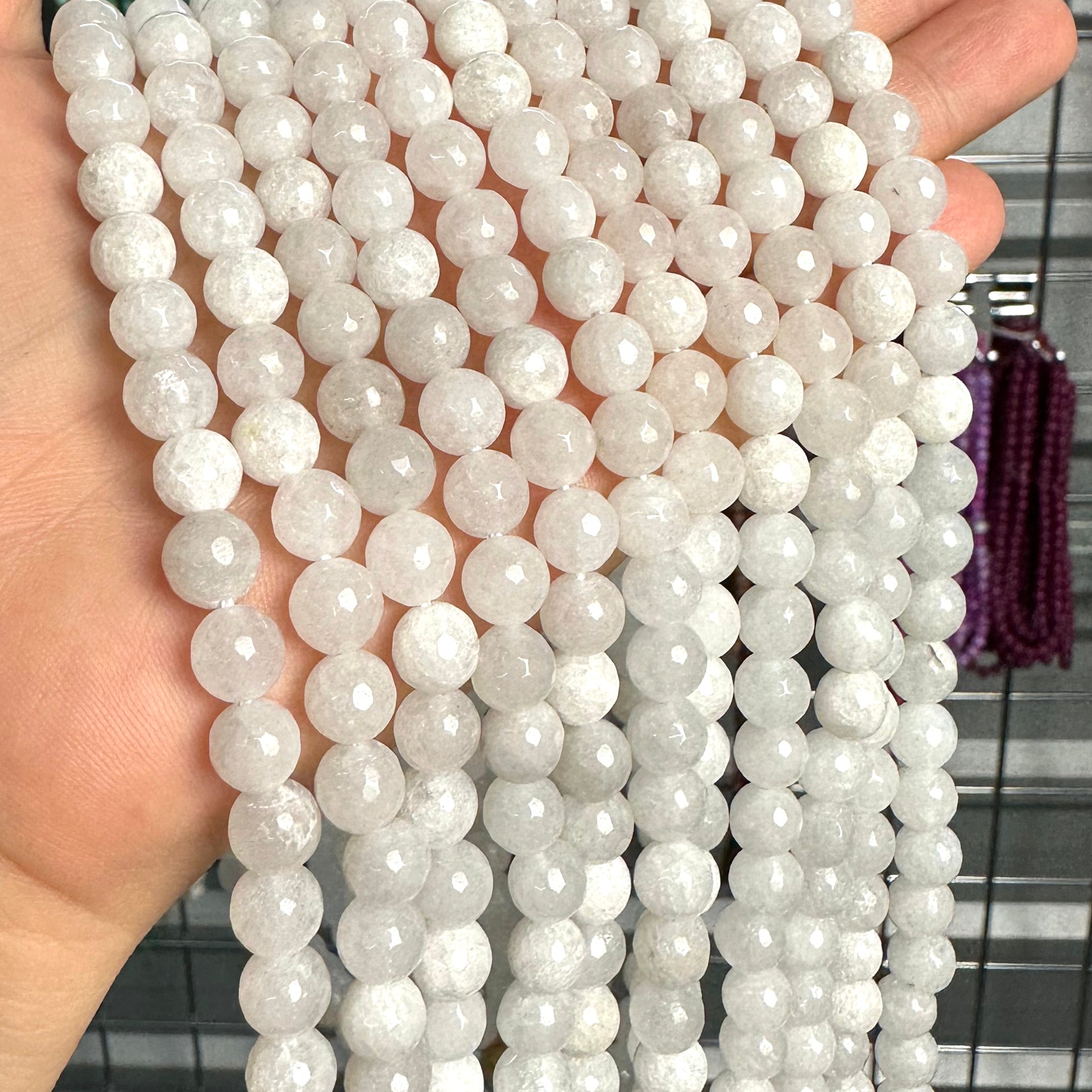 8mm white candy jade (quartz) - round - faceted (dyed) WJ40-18