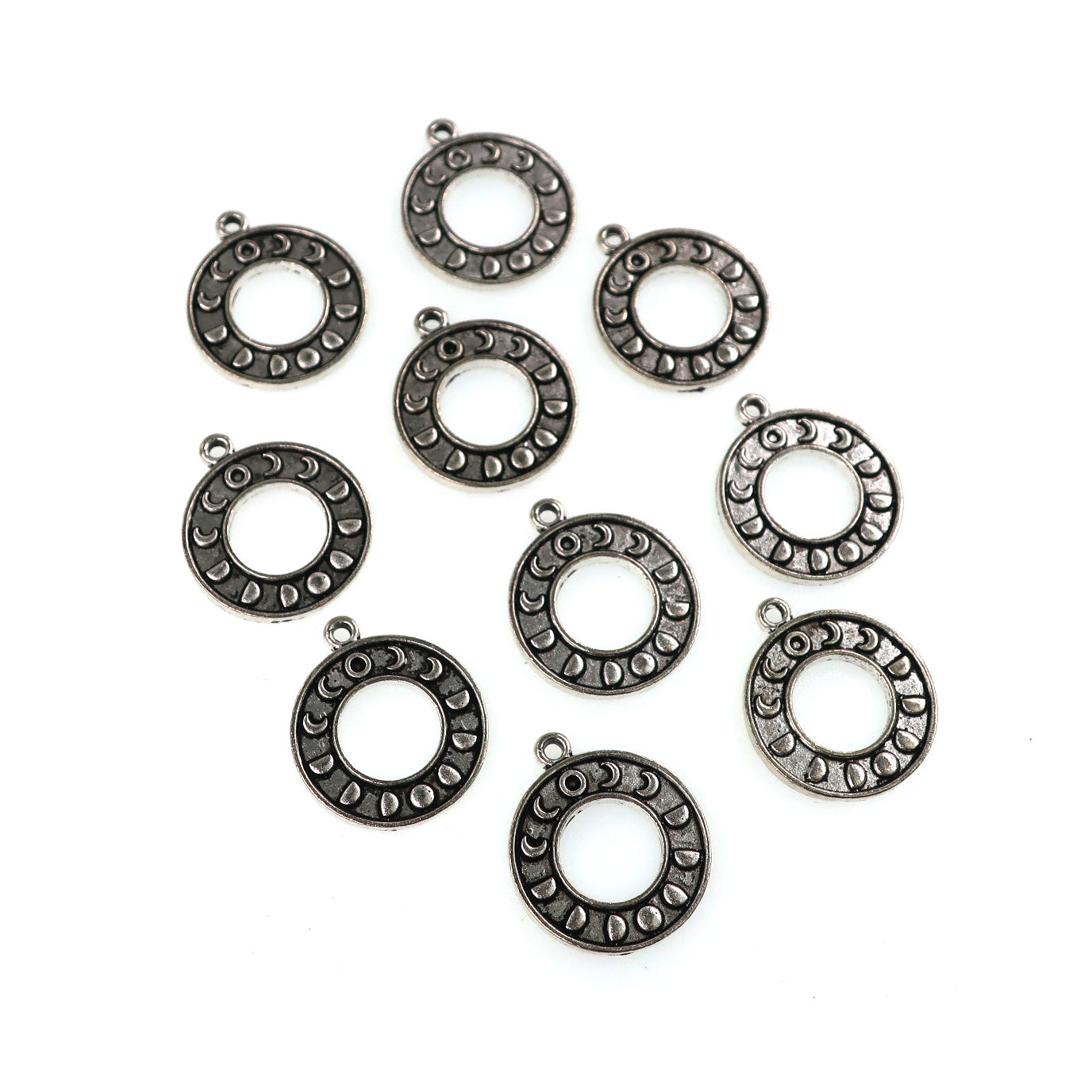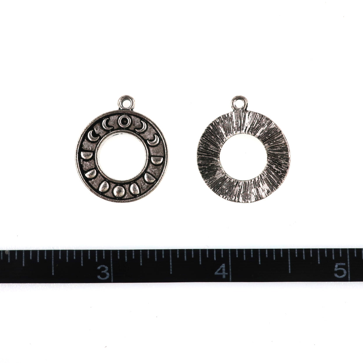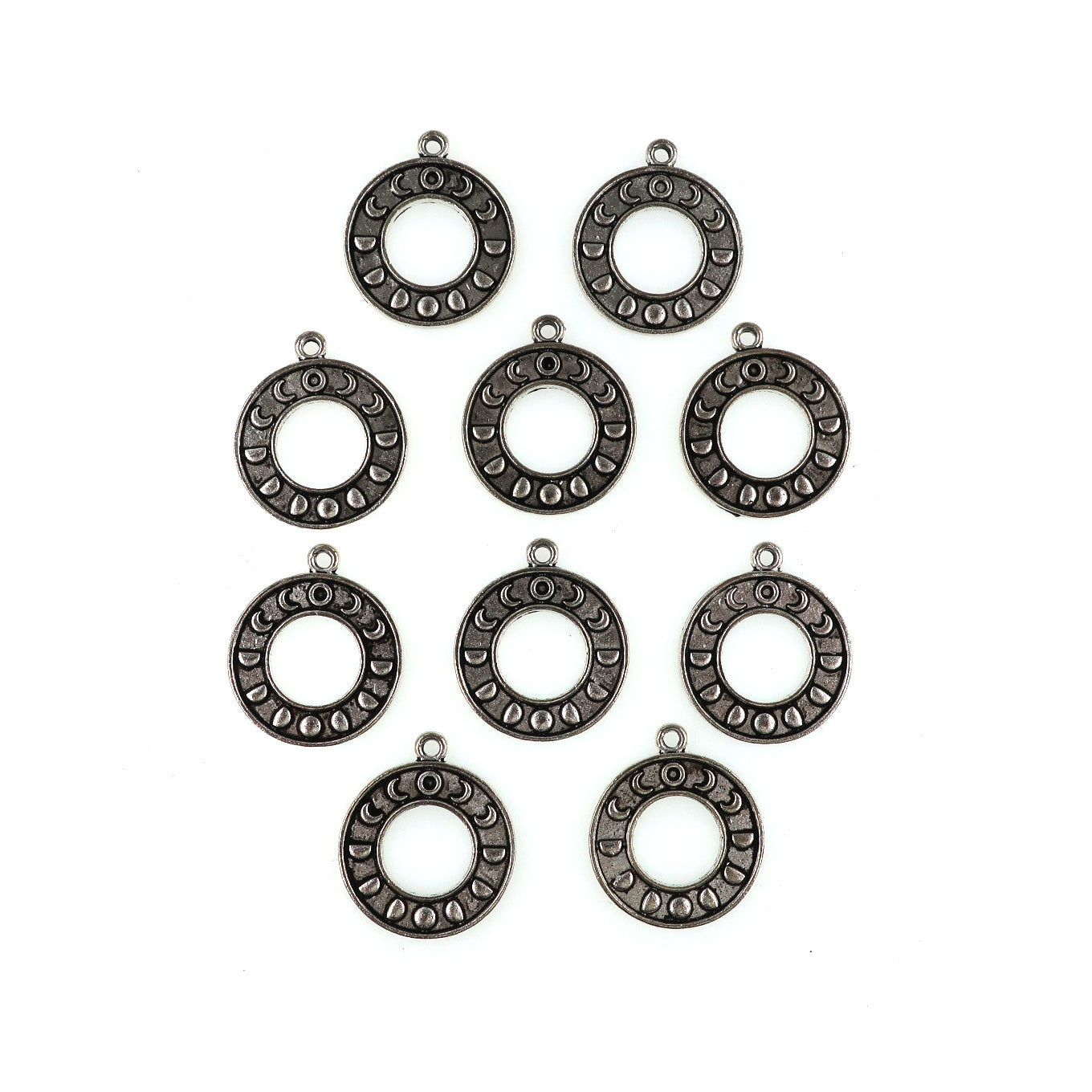 (10 pack) Moon Phase Hollow Circle charms - antique silver