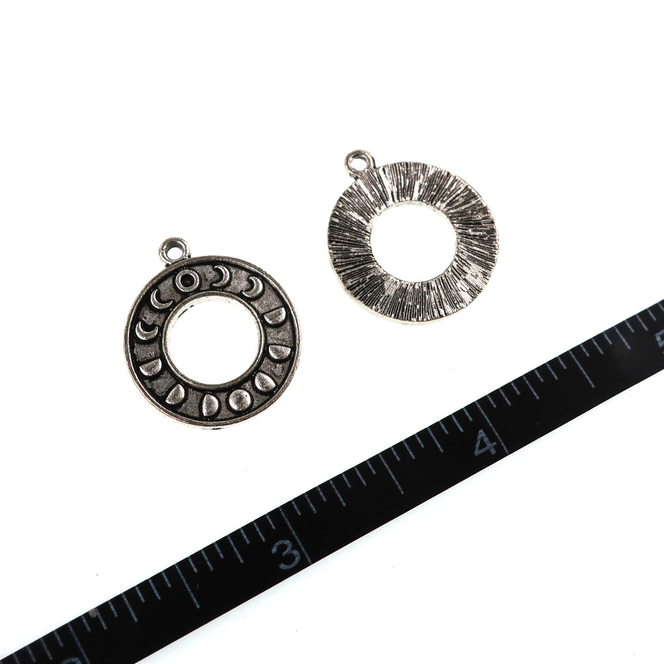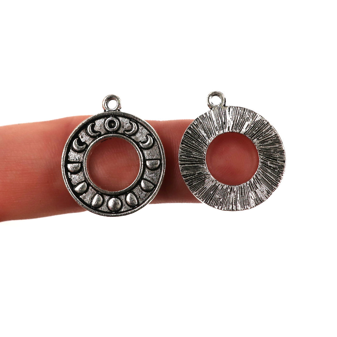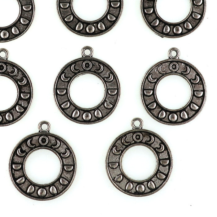 (10 pack) Moon Phase Hollow Circle charms - antique silver